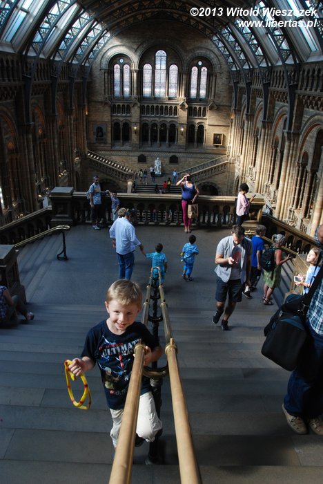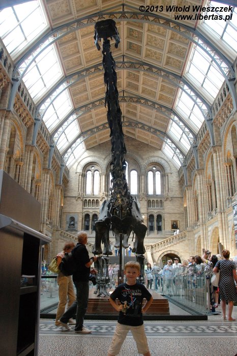System transportu w Londynie działa jak w szwajcarskim zegarku, więc bez trudu i bez żadnego błądzenia trafiam wszędzie, gdzie chcę. Dzisiaj na początek coś dla dzieci, zwłaszcza dla Jeremiego, czyli londyńskie Muzeum Historii Naturalnej, w którego holu stoi ogromny diplodok. A to nie koniec atrakcji! Ekspozycja jest tak bogata, że spędzamy tu kilka godzin, a i tak mam świadomość, że nie wszystko widzieliśmy!