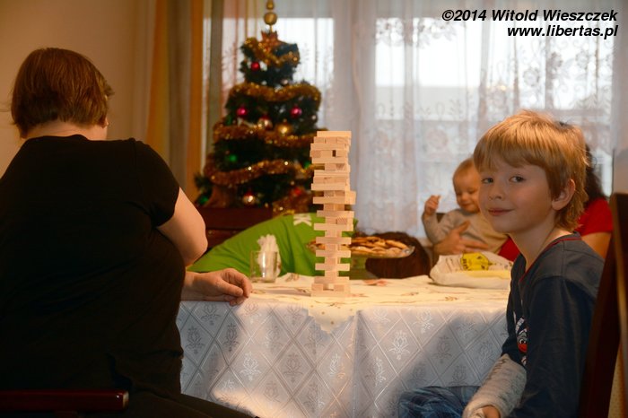 Rok temu Dobrawa była za mała, aby zasiąść z nami przy stole, a dzisiaj potrzebuje do tego odpowiedniej kreacji. Jeremi do swojego odświętnego wyglądu podchodzi sceptycznie. Koszula z kołnierzykiem zdaje się robić mu krzywdę. Ale ostatecznie wszyscy za chwilę zasiądziemy do stołu. Próbowaliśmy szukać na niebie pierwszej gwiazdki, ale pogoda nie była ku temu sprzyjająca. Niestety, śniegu za oknem też nie znaleźliśmy, czyli będą to kolejne szare święta. Szkoda.