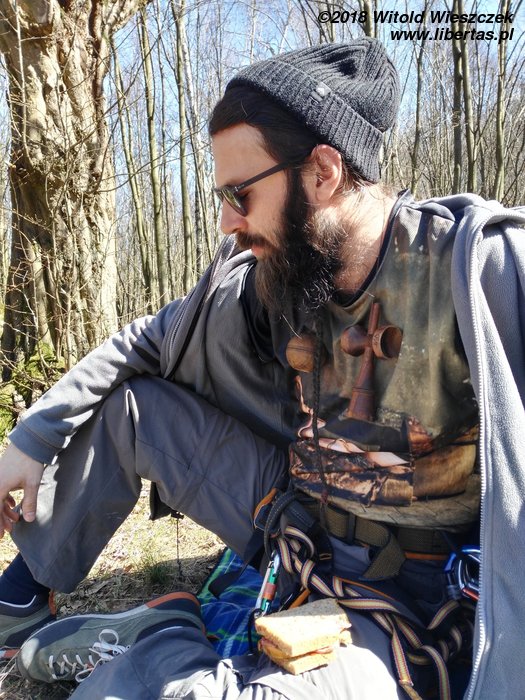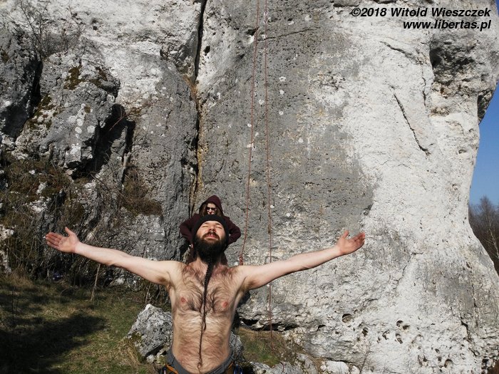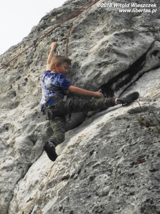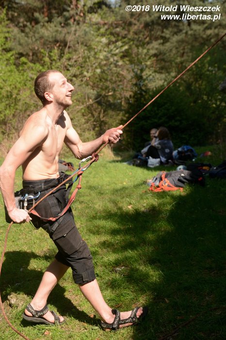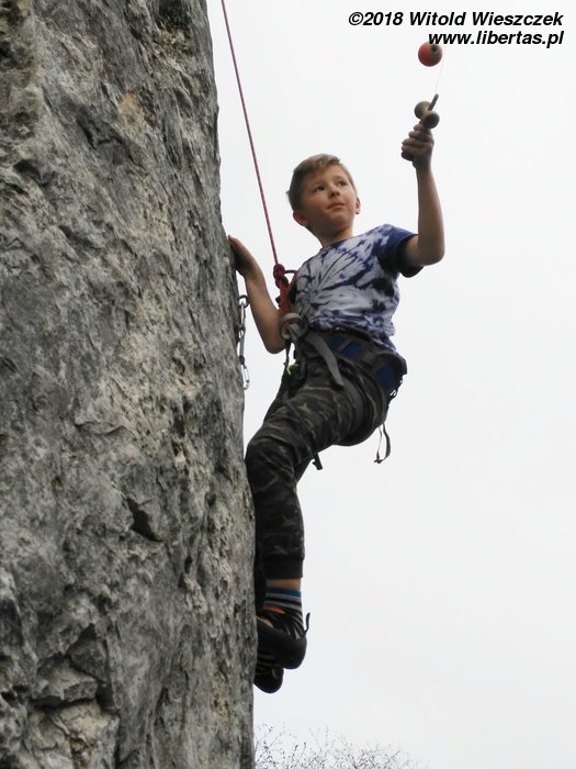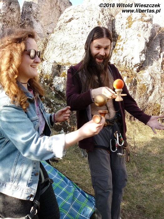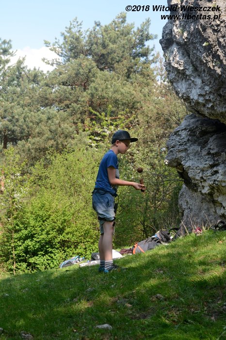 W piątek robimy sobie jakiś bardzo wesoły wieczorek filmowy, a z samego rana jedziemy się wspinać do Mirowa, gdzie Jeremiemu udaje się na wędkę zrobić dwie szóstki! Nie ma co prawda w zwyczaju podczas wspinania pić piwa czy palić papierosów, jak ja i Piotrek, ale za to znajduje sobie inny oryginalny znak rozpoznawczy – kendamę!