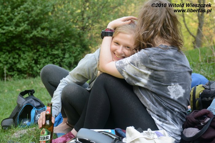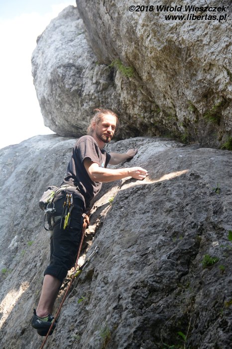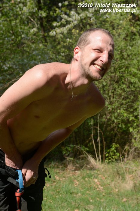 Piotrek potraktował wspinanie trochę poważniej niż my i nie dość, że przez całą zimę ćwiczył na panelu, a nawet zatrudnił sobie bardzo seksowną prywatną trenerkę, to jeszcze ma kask, więc w trudnościach dróg bije nas już na głowę. Na szczęście piwo i występy artystyczne lubi dalej, więc nadal mamy wiele wspólnego.