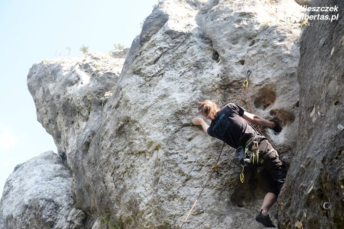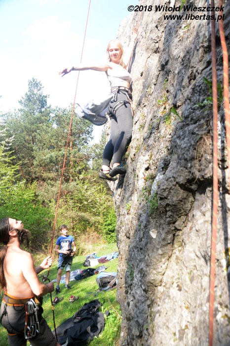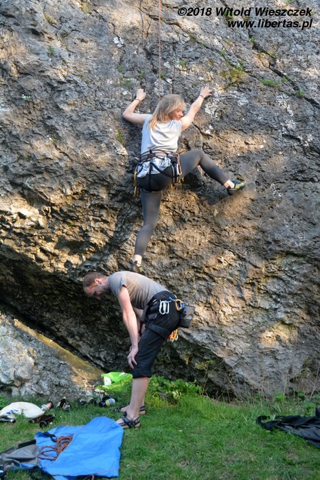 Wspinamy się na kilku drogach, rozmawiamy, gramy w kendamę, a Patrycja uczy się do egzaminu z historii sztuki. Fajnie było!