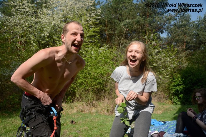 Wiosna wspinaczkowo zaczęła się u nas bardzo bogato. Już trzeci łikend z rzędu udaje nam się wyskoczyć na łono tak zwanej przyrody i poocierać trochę o wapienne skały. Tym razem w jeszcze większym, ale jakże sprawdzonym gronie: Kasia, Patrycja, Ola, Piotrek, Alu, Jerem i ja! Z maszyny losującej wypadły nam Podlesice, a dokładniej Góra Apteka. Pogoda jest, dobre towarzystwo jest, piwo jest, pokrzywa jest, skała jest, szpej jest. Do roboty!