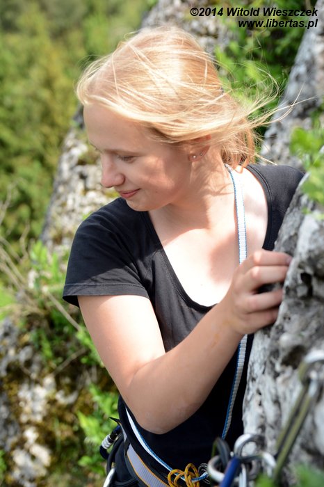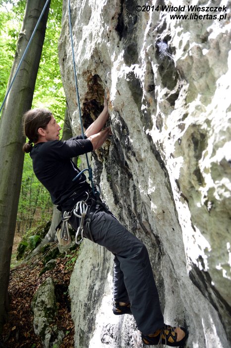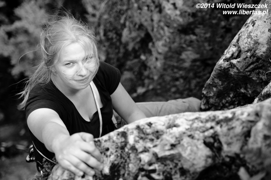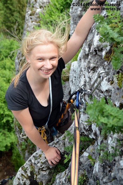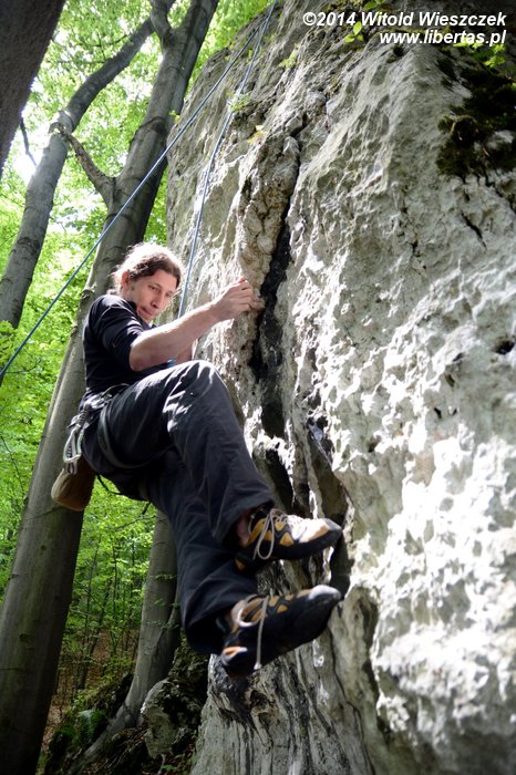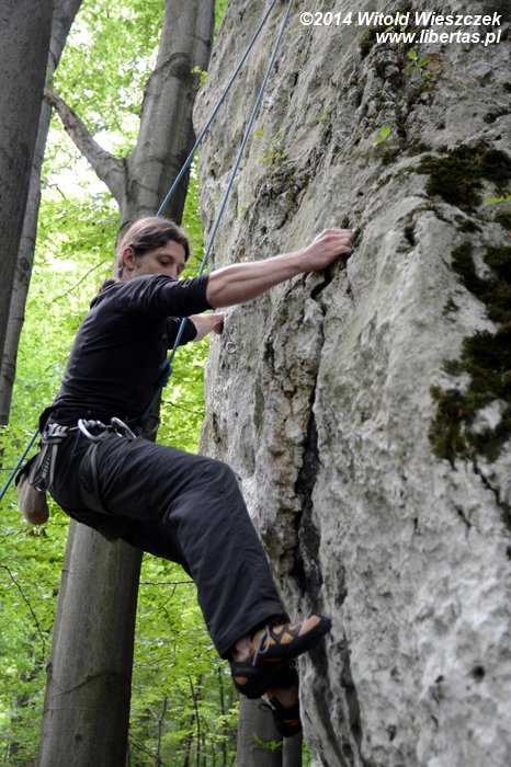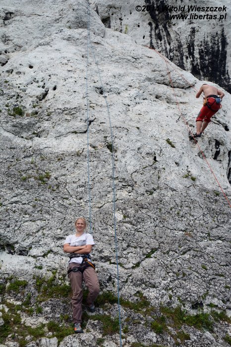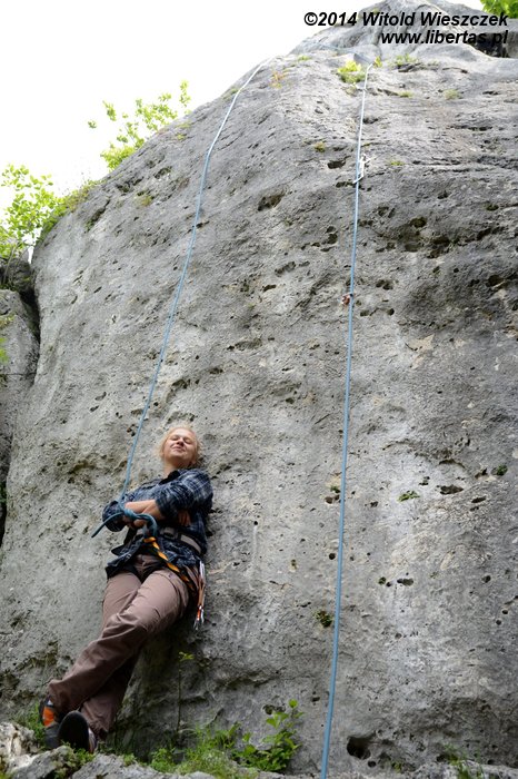 Na rozgrzewkę Głodno (IV+), a następnie Pół serio (V+) OS, czyli Kasia zapisuje na swoim koncie pierwszego w życiu OS-a o takiej wycenie. Następnie Pół słodko (V), którego niestety nie udało się Kasi poprowadzić, a na koniec na wędkę bawimy się na Zakręcie U (VI.1). Tę drogę o dziwo jakimś cudem udaje mi się nawet dość szybko przejść. Nie obyło się oczywiście bez odpoczywania na linie, ale widzę światełko w tunelu.
