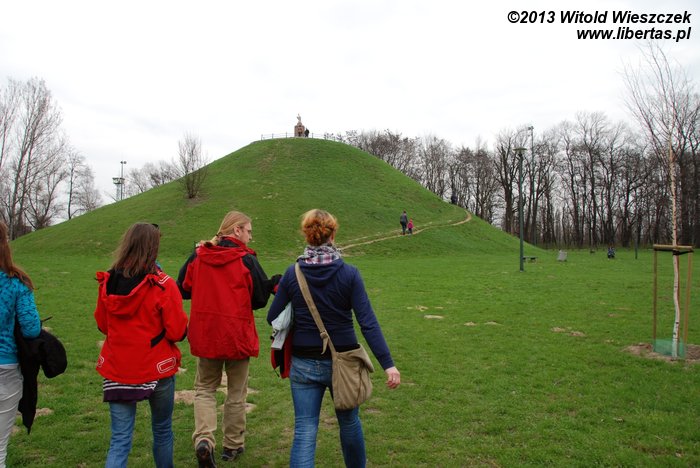Następnie udaliśmy się na prawdopodobnie najstarszy kopiec w Krakowie – kopiec Kraka. Położony na wapiennym wzgórzu Lasoty (271 m n.p.m.) wznosi się na kolejne 16 metrów i jest bardzo dobrym miejscem, by podziwiać panoramę Krakowa. Na marginesie dodam, że wzgórze należało niegdyś do potężnego rodu Awdańców.
