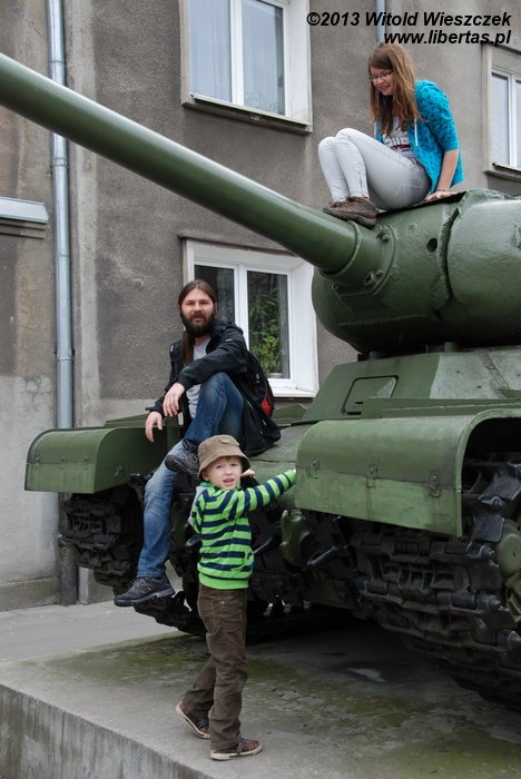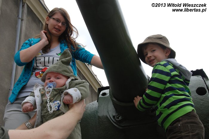 Kopiec Wandy stoi w Nowej Hucie, więc przy okazji zatrzymaliśmy się koło Teatru Ludowego, w pobliżu którego stoi czołg. Niby czołg jak to czołg, gąsienice i armata, ale jaka frajda dla dzieci?! No dobra, dla mnie też.