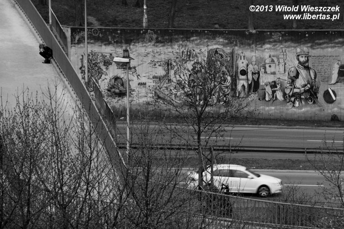 Z kopca widać również mural Silva Rerum przedstawiający historię Krakowa. Mural powstał z okazji 750-lecia lokacji miasta i był wtedy największym muralem na świecie (5 metrów wysokości i 90 metrów długości). Jeśli od tego czasu nikt nie namalował większego, to nadal jest największy.