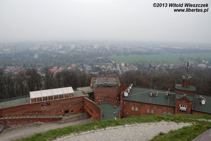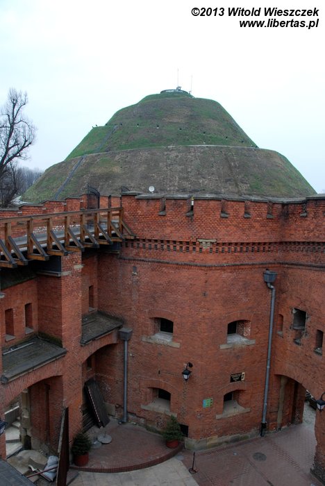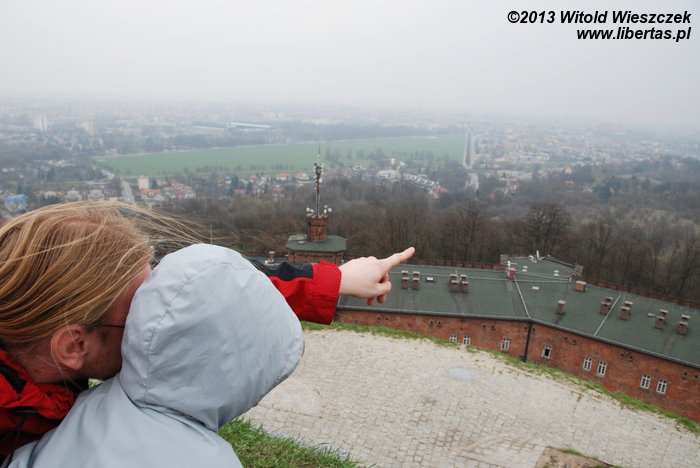 Budowę kopca Kościuszki zakończono w roku 1823, a w roku 1850 wzgórze św. Bronisławy wraz z kopcem zostało przejęte przez austriackie wojsko, które wybudowało na nim umocnienia. Podczas II wojny światowej podobno Niemcy planowali nawet zrównać kopiec z ziemią, ale na szczęście nie zdążyli i pomnik przetrwał. W pomieszczeniach dawnego fortu obecnie znajduje się między innymi muzeum, które zresztą również przy okazji zwiedziliśmy. Niestety widoczność ze szczytu była bardzo ograniczona i utrudniała podziwianie okolicy. Kopiec Piłsudskiego, który też zamierzaliśmy odwiedzić, ledwie majaczył we mgle. Aura w ogóle nas tego dnia nie rozpieszczała, a na szczycie kopca wiatr wręcz bezczelnie się między nami rozpychał łokciami. Na dzisiaj koniec!
