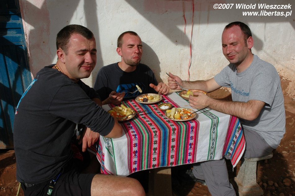 Noc spędzamy w autobusie, który jedzie jak szalony, ścinając zakręty i nie nadużywając hamulca, za to nie szczędząc gazu. Autobusy dla turystów jeżdżą po ciemku, żeby śpiący gringos się specjalnie nie stresowali. A nawet jeśli się któryś obudzi, woli szybko zasnąć niż patrzyć śmierci w oczy. Buenas noches.