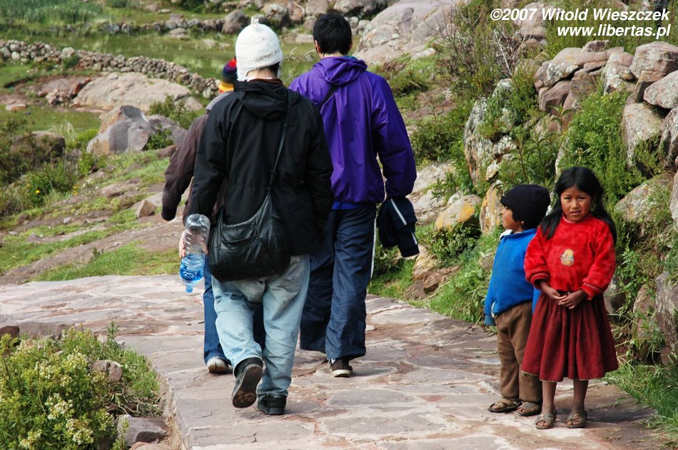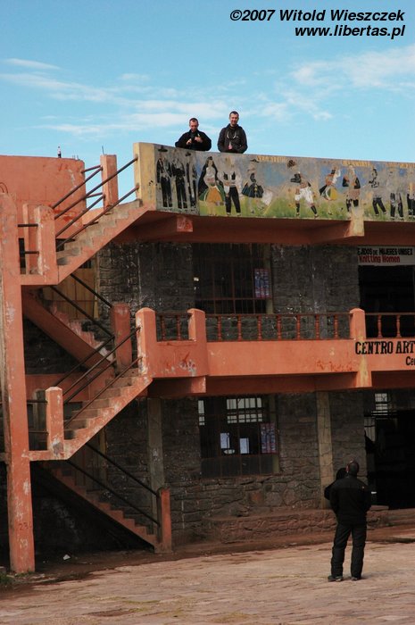 Z Arequipy do Puno jest jakieś 325 km, na miejscu byliśmy około 2 w nocy, a o 6 rano pobudka, śniadanie kontynentalne i taksówka zabiera nas do portu, skąd wypływamy na leżące pomiędzy Peru i Boliwią jezioro Titicaca. Płyniemy na jedną z wielu pływających po jeziorze wysp.