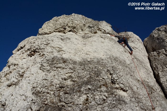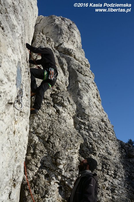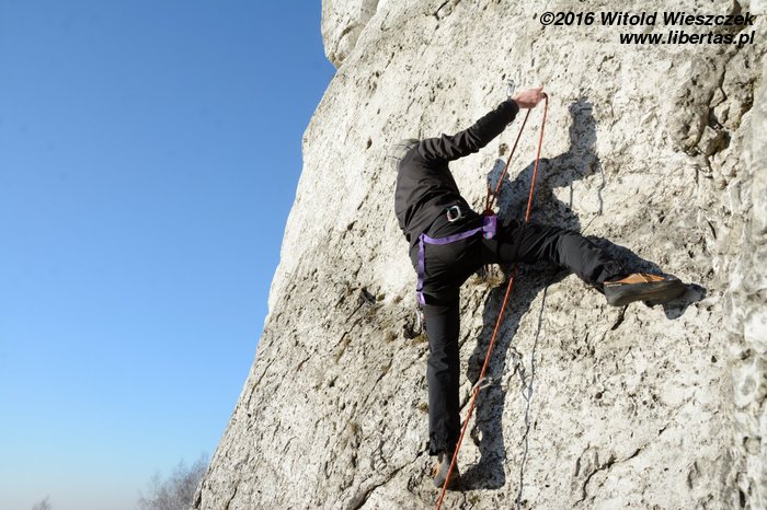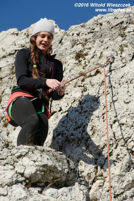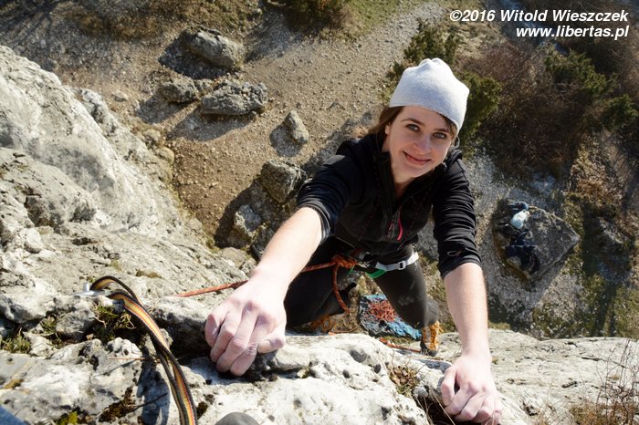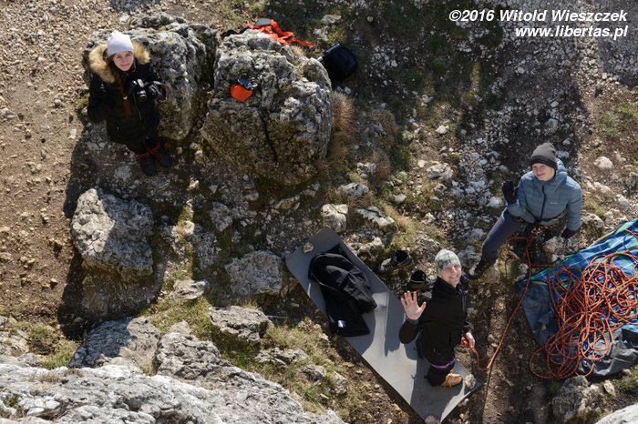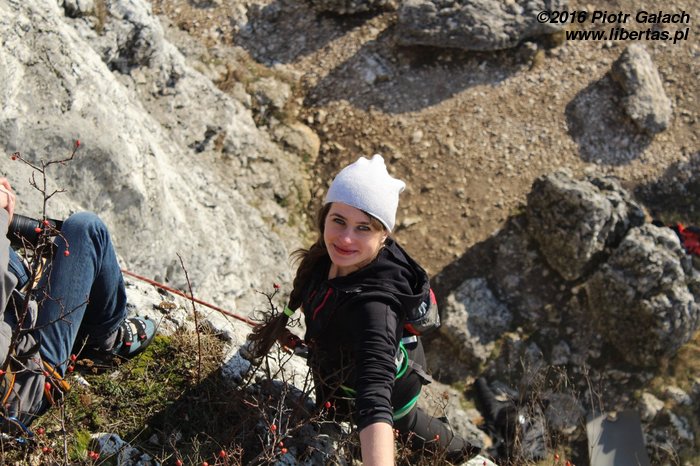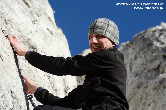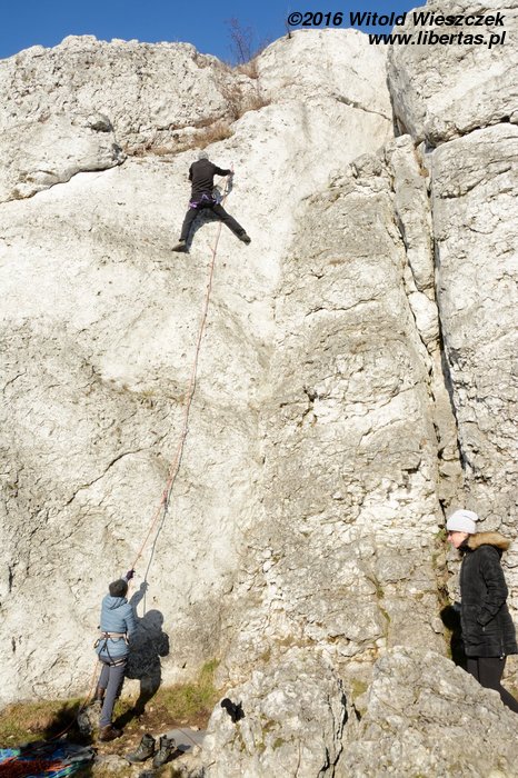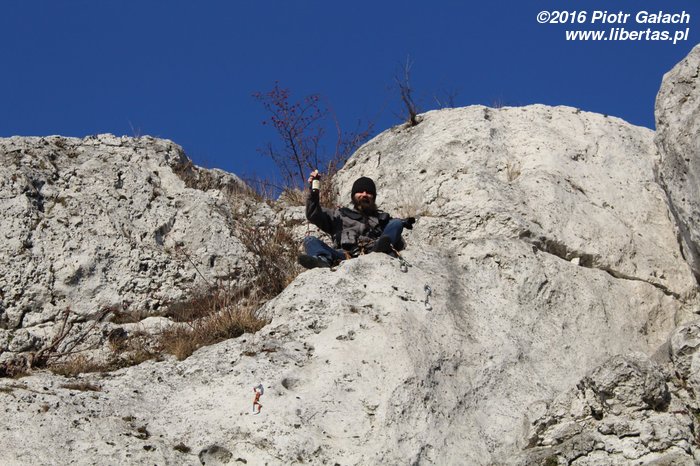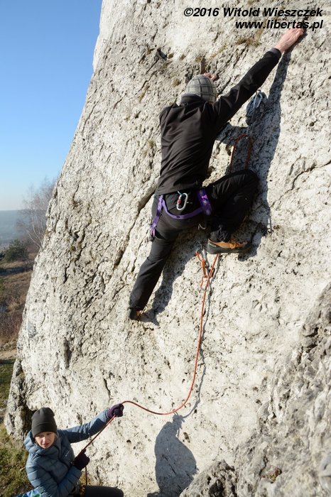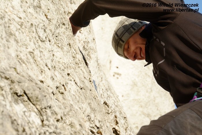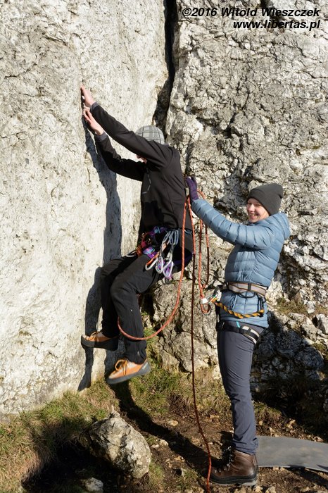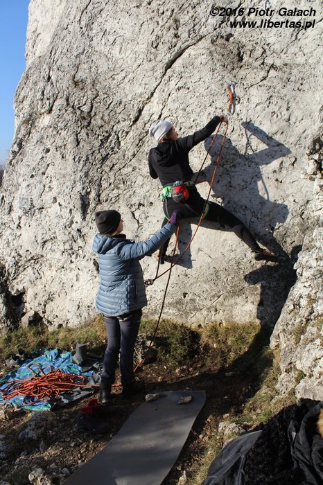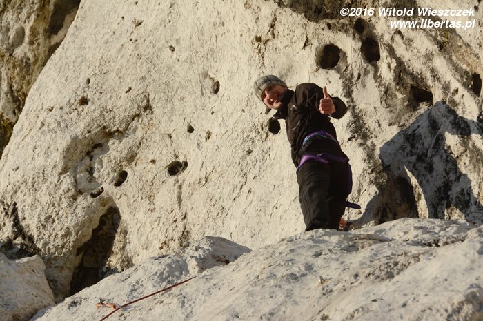 Na koniec Kasia postanawia udawać Supermana w zbyt dużej pelerynce, ale co ten wiatr z nią wyprawiał, to już jest materiał na zupełnie inne opowiadanie! Tymczasem w promieniach zachodzącego zimowego słońca kończymy sezon 2016. Rekordowo późno, bo w Sylwestra, ale pomimo wszelkich przeciwności losu w dobrych humorach i z nadzieją, że sezon 2017 będzie lepszy, czego wszystkim wielbicielom skałkolazactwa życzymy!