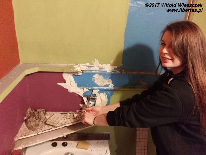 W październiku zapadłem na poważne zapalenie ucha, w efekcie czego doznałem perforacji błony bębenkowej, a chyba i jakiegoś zapalenia błędnika, bo potrafiłem tracić równowagę bez wspomagania się napojami wyskokowymi. Dojście do siebie zajęło mi kilka tygodni (w uszach piszczy mi do dziś), a do zawodu budowlańca amatora mogłem wrócić dopiero po świętach. Po kilku dniach pracy doszedłem do wniosku, że właściwie powinienem zburzyć wszystkie ściany, skuć wylewki, wyrwać wszelkie kable i rury... Chyba jednak zejdzie mi z tym remontem dłużej niż miesiąc... Majeczko, nie masz ochoty czegoś zdemolować?