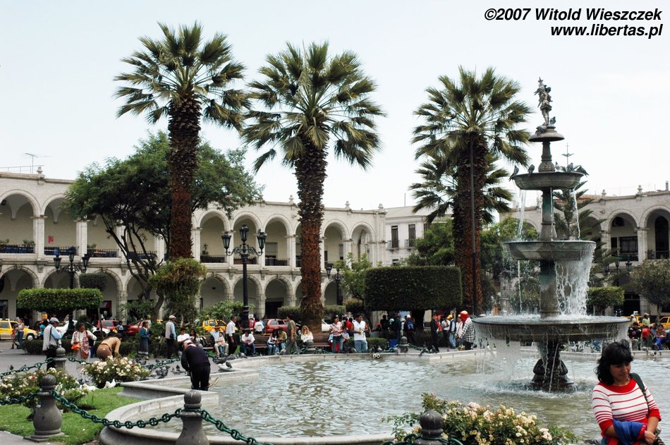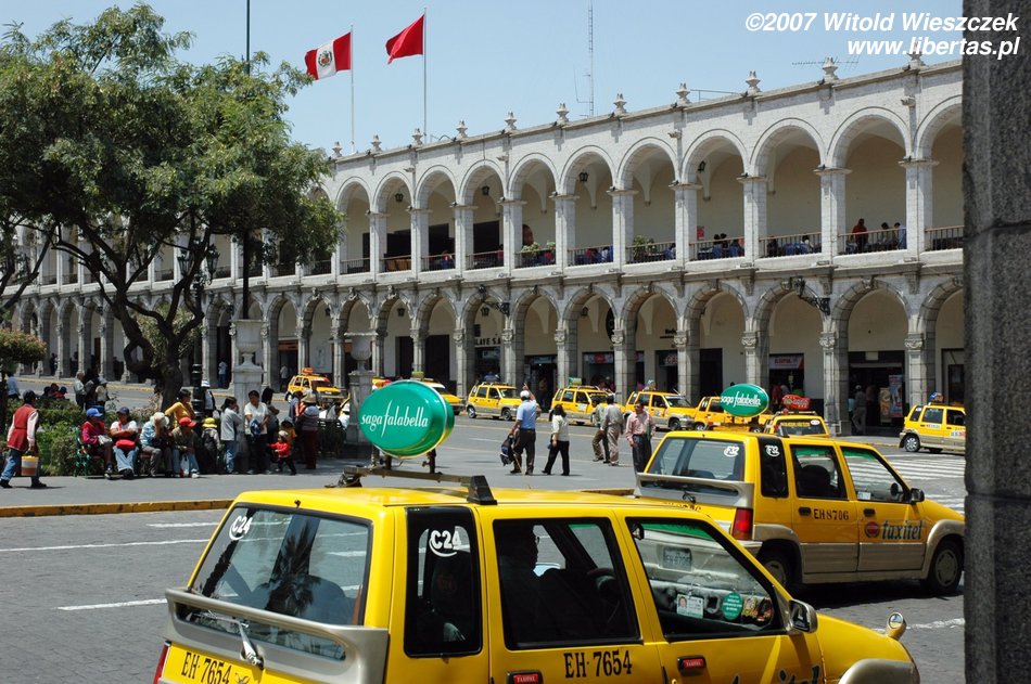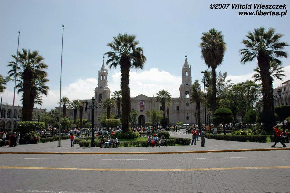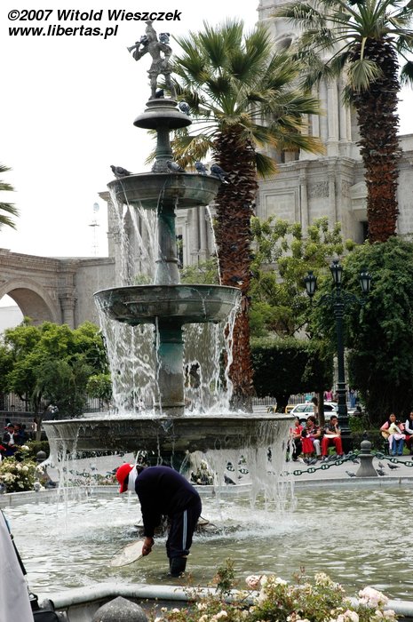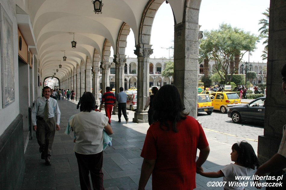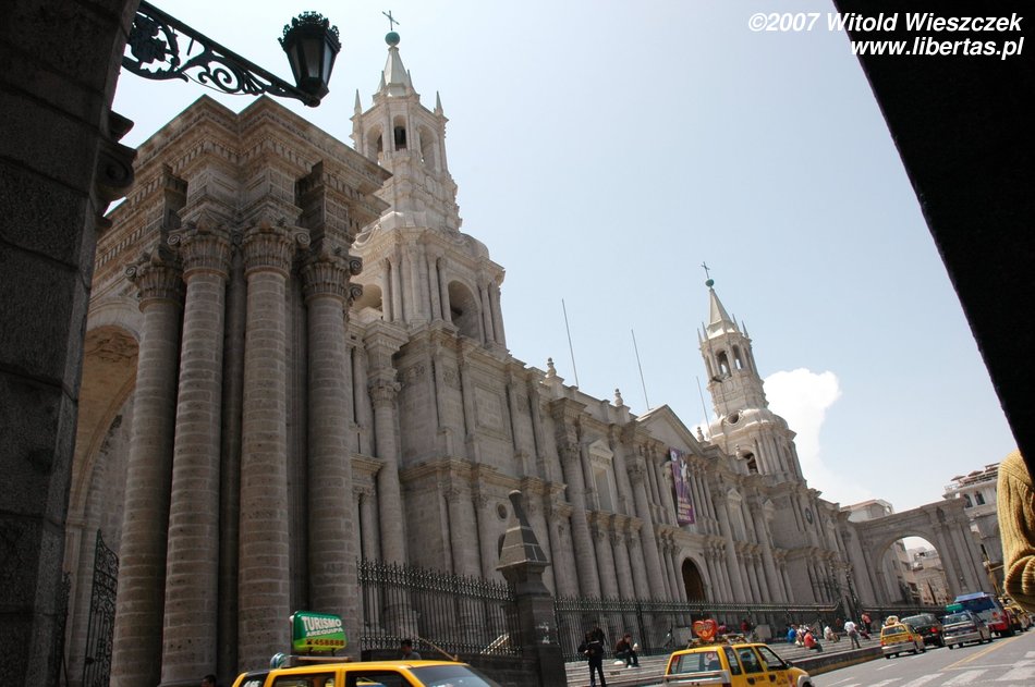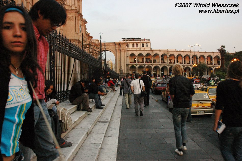 Gdy tylko trochę się odświeżyliśmy, pani zaproponowała nam wycieczkę konno po obrzeżach Arequipy za jedyne 60 soli, oraz dwudniową wycieczkę do kanionu Colca za 30$ + 35 soli za wjazd do parku. Do konnej przejażdżki mamy jeszcze 2 godziny, które wykorzystujemy na szybki spacer po Arequipie. Stara część miasta jest po prostu zachwycająca, z czego zresztą mieszkańcy w liczbie 948 390 (stan na rok 2007) są bardzo dumni.