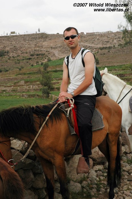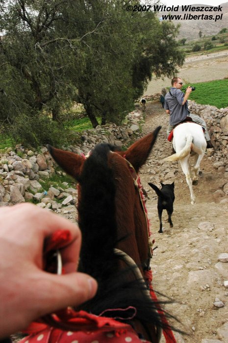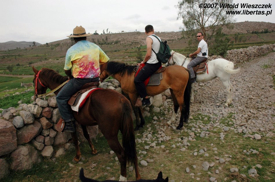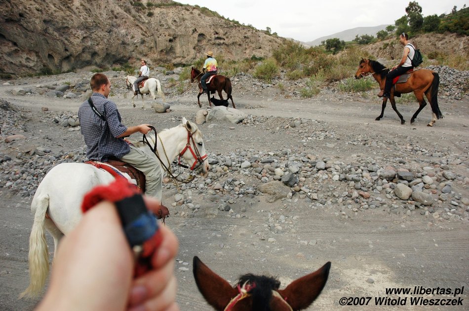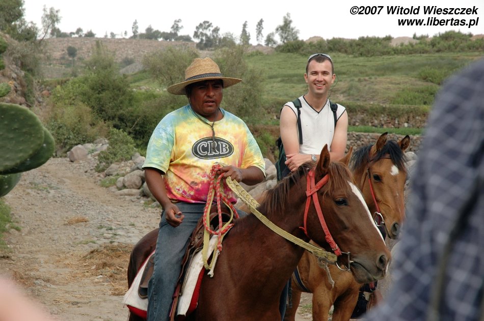 Z tą pocieszającą myślą wsiadłem na konia i okazało się, że wcale nie jest tak źle. Oczywiście na pewno nie jeździłem poprawnie, no i koń też na pewno nie był wymagający, ale nie zmienia to faktu, że jeździłem tak sobie przez dwie godziny, nie spadłem i bawiłem się świetnie! Jeśli będziecie w Arequipie, to polecam tę przyjemność z czystym sumieniem...