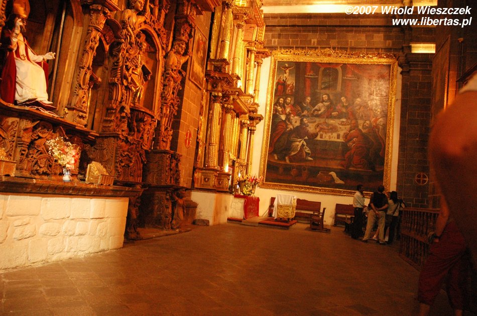 Idziemy oczywiście na Plaza de Armas, gdzie spotykamy Suzanę, holenderkę, którą poznaliśmy w Ica. Ale to Peru małe! Kupujemy karnet (18 soli dla studentów), który obejmuje sześć obiektów: Catedral, Iglesia del Triumfo, Iglesia de la Sagrada Familia, Iglesia de la Compania, Iglesia de San Blas i Museo de Arte Religioso. Kościoły są piękne, ale myśl, że powstały czasem dosłownie na grobach Inków burzy krew. Zresztą to tylko jeden z przykładów barbarzyństwa, Hiszpanie wywozili stąd np. bezcenne dzieła sztuki ze złota i przetapiali je na sztabki!