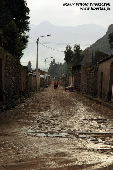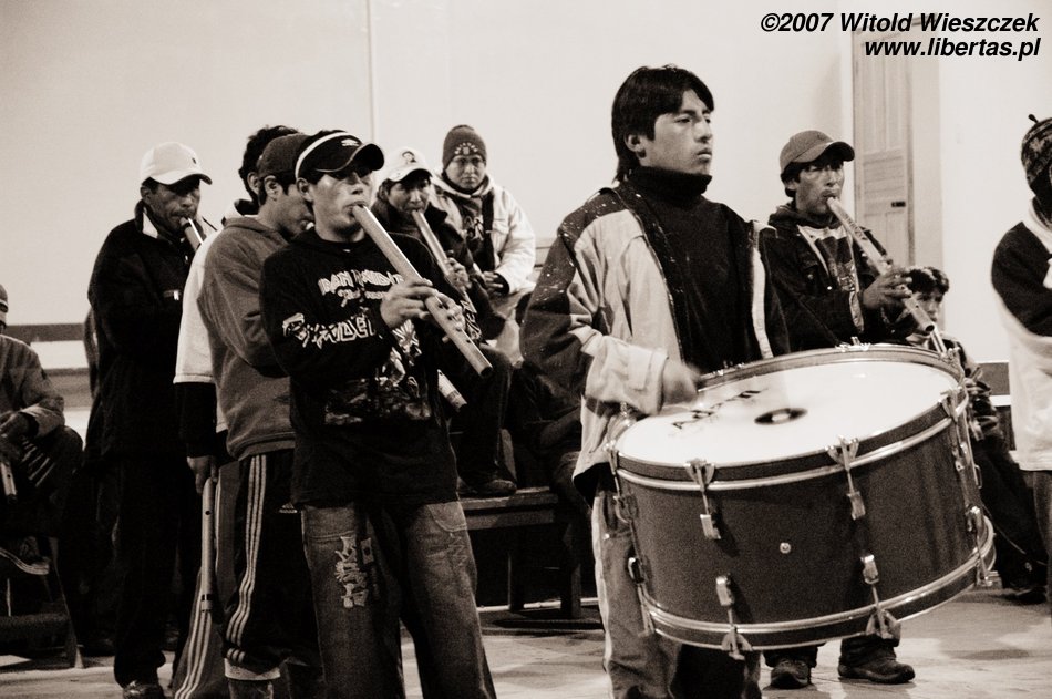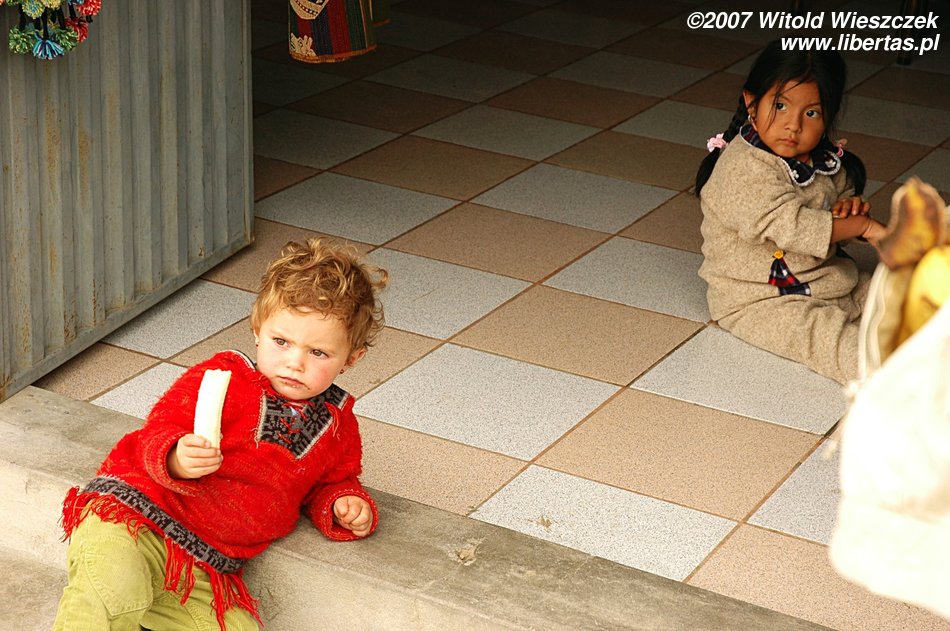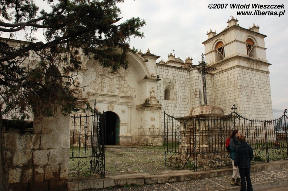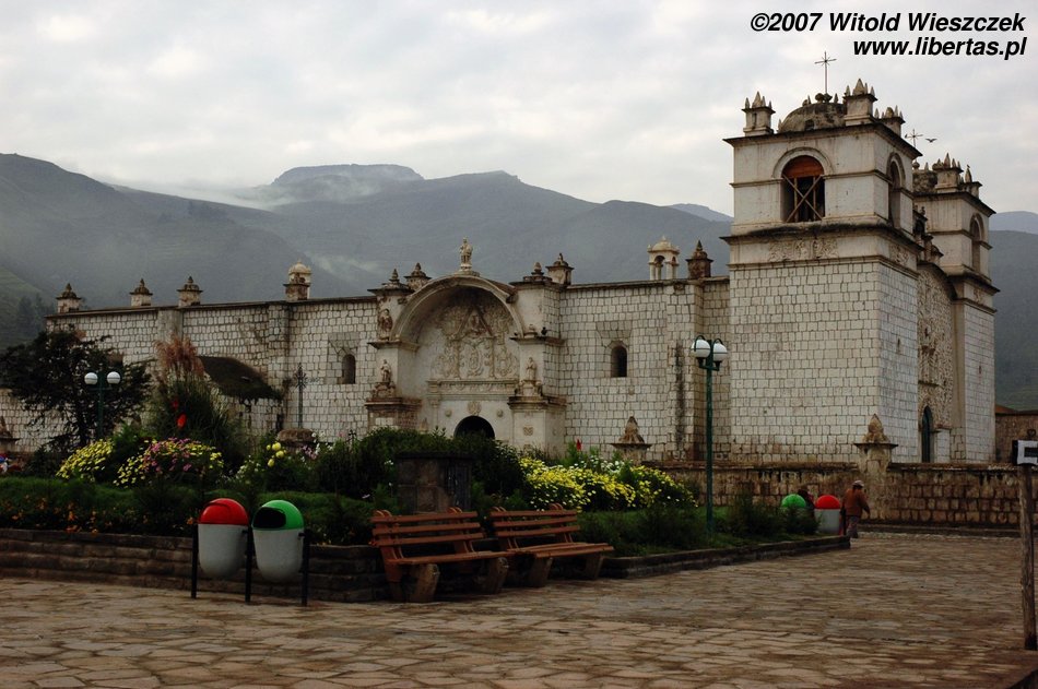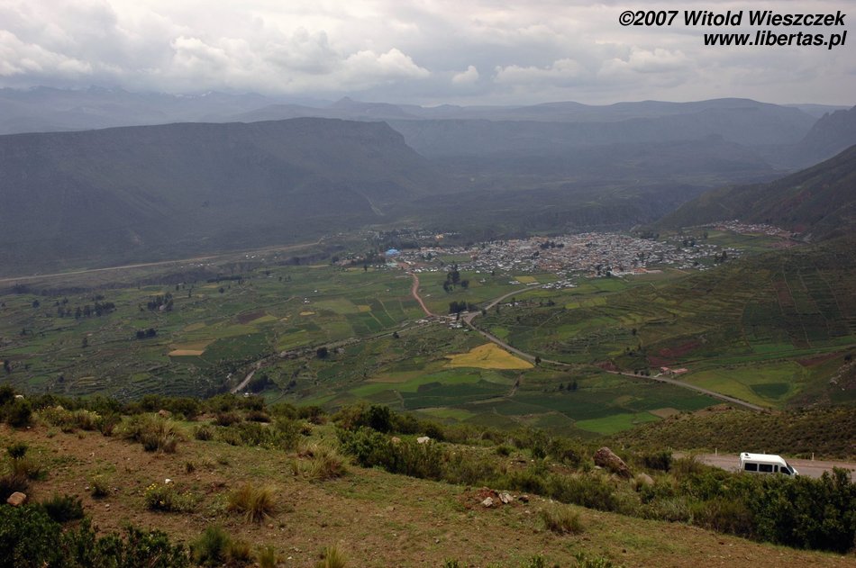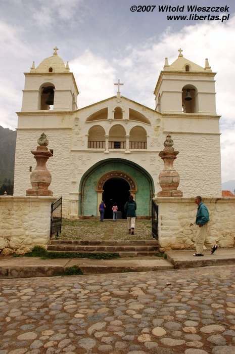 Dzisiaj jedziemy w położone na wysokości 3450 m n.p.m miejsce zwane Cruz del Condor, po drodze kilka razy zatrzymujemy się, by podziwiać zapierające dech w piersiach widoki. Odwiedzamy też Yanque, w którym znajduje się trochę podniszczony kościółek z unikalną na skalę światową barokową fasadą. Na (zgaduje w ciemno) Plaza de Armas tańczą dla turystów Indianki. Smutny jest widok zabiedzonej dziewczynki ze szmacianką, na i zrujnowanych lub niedokończonych domów na tle pięknych gór. Ten kontrast będzie mi towarzyszył przez całą podróż. Niesamowicie piękny kraj, wyeksploatowany przez białych do granic możliwości, najpierw okradziony ze złota, potem z miejsc kultu zamienionych na chrześcijańskie kościoły, w końcu z miedzi wydobywanej w niewolniczych warunkach dla zachodnich koncernów, a dzisiaj nawet firmy turystyczne, które zarabiają na turystach, często są spoza Peru. W głowie się nie mieści, ale do dzisiaj nadal okrada się tych ludzi!