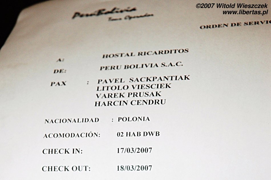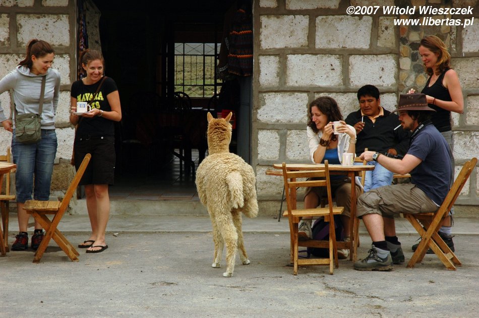 Rano z pomocą przychodzą mi koleżanki z Austrii, ratują mi życie tabletką na chorobę wysokościową, która trochę mi pomaga. Potem w drodze jeszcze ratują mnie spod kół autobusu, śmiejemy się więc, że są dzisiaj moimi wybawicielkami. Zabawne, że czasem jedno spotkanie ma ogromny wpływ na postrzeganie całego narodu. Zdaje sobie przecież sprawę, jak fałszywe potrafią być uogólnienia, ale przez te dwie dziewczyny mam teraz ogromną sympatię do całego narodu austriackiego. Serdecznie pozdrawiam Elizę i Ewę. Mam nadzieję, że jeszcze się spotkamy, może na Machu Picchu.