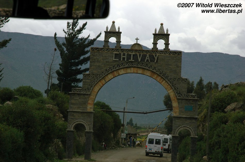 Chivay wita nas przebranymi lamami i bramą powitalną. W Keczua (języku Inków) Chivay oznacza miłość, wjeżdżamy więc do miasta miłości. Ale miłość wszędzie kosztuje, płacimy za wjazd do parku 35 soli od osoby.