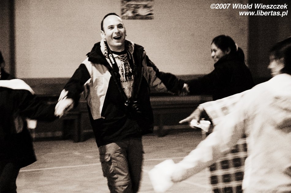 Wieczorem organizowana jest dla nas kolacja, na której mamy jeść tradycyjne potrawy i oglądać tradycyjne tańce. Wchodzimy do sali wypełnionej po brzegi turystami. To nie dla nas, bardzo dziękujemy pani przewodnik i tłumaczymy, że idziemy poszukać czegoś na własną rękę, chyba robimy jej tym przykrość, ale naprawdę nie mieliśmy ochoty spędzić wieczoru z turystami. Spacerując po miasteczku, nagle słyszymy bęben. Idąc za dźwiękiem, dochodzimy do szkoły, gdzie właśnie odbywa się jakaś próba, najwyraźniej nie przeszkadzamy miejscowym, a Robak nawet zostaje wciągnięty do tańca! Wracając do hotelu, wstępuję na 15 min do kafejki sprawdzić maile i dowiaduje się, że będę miał syna. Niestety nie mam siły tego uczcić, czuje się fatalnie, boli mnie w klatce piersiowej, mam tętno 130! Przez całą noc prawie nie śpię. Jak to w mieście miłości.