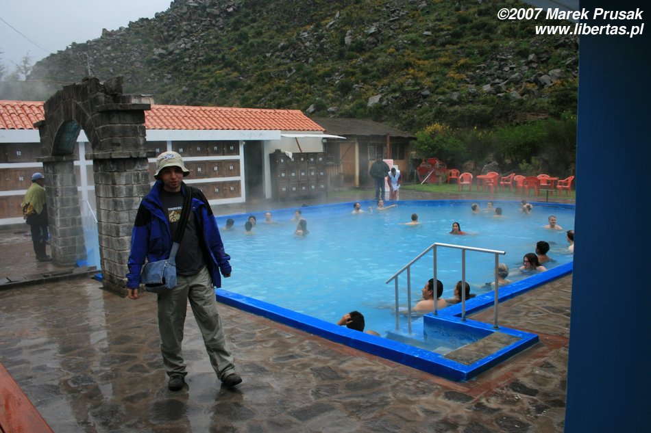 Wieczorem jedziemy nad gorące źródła La Calera, bogate w wapń i żelazo wody wypływając z ziemi, mają temperaturę 85°C. Jest bosko! Spotykamy tu grupę Polaków, którzy wykupili wycieczkę w biurze podróży. Za 18 dni zapłacili mniej więcej tyle, ile my wydamy tutaj przez całe 5,5 tygodnia!
