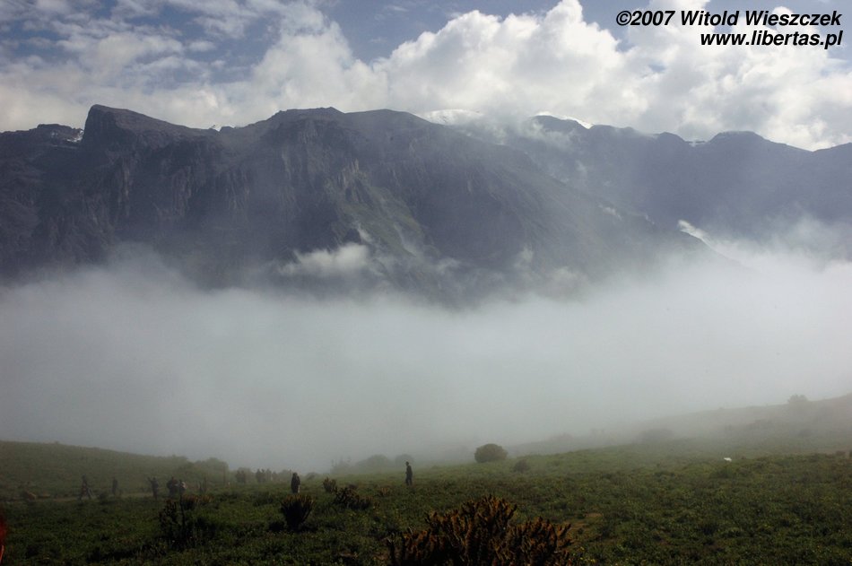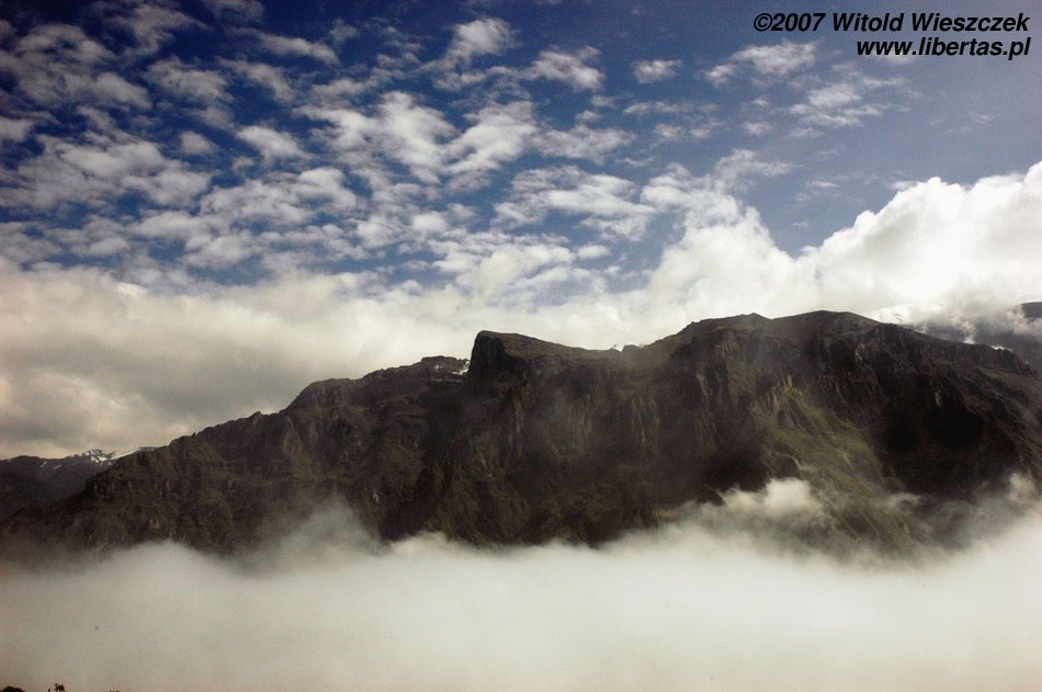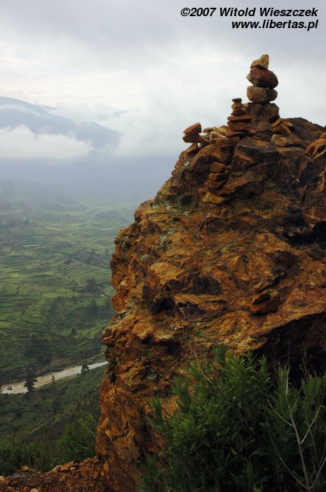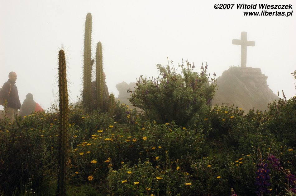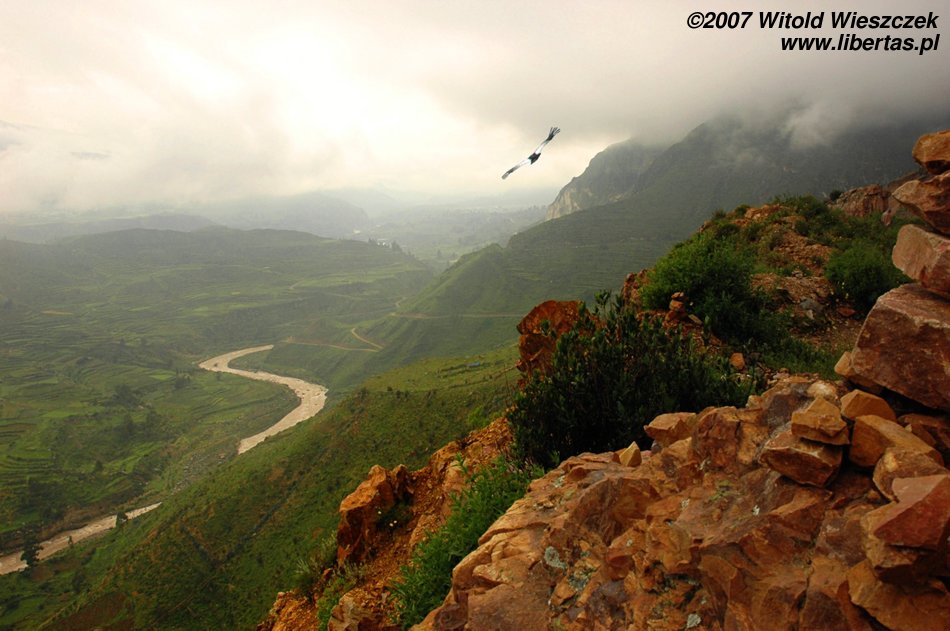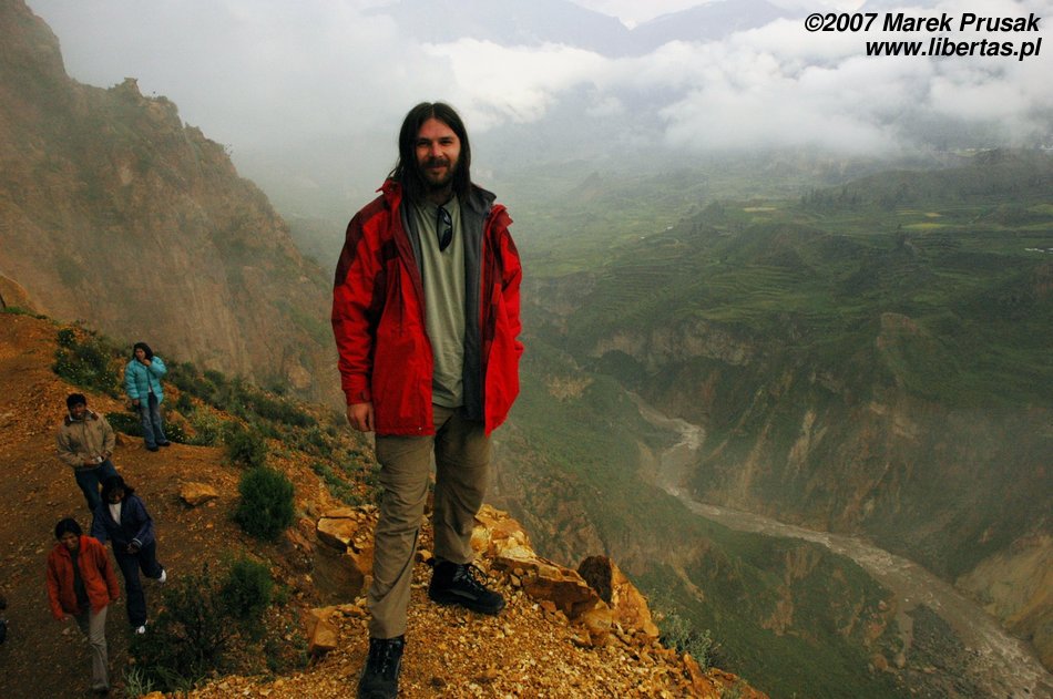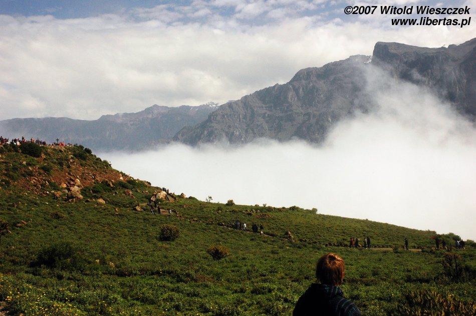 Tak było właśnie w najważniejszym miejscu. Cruz del Condor zawdzięcza swoją nazwę unoszącym się w tym miejscu na prądach ciepłego powietrza olbrzymim kondorom, których rozpiętość skrzydeł osiąga czasem nawet trzy metry! Ptaki te robiły wielkie wrażenie już na Inkach, którzy wybrali je sobie na swój symbol. Niestety my nie zobaczyliśmy tutaj ani kondorów ani, co gorsza, kanionu. Jest on dużo węższy i ponad dwukrotnie głębszy od Wielkiego Kanionu Kolorado w USA. Co ciekawe został odkryty przez Polaków, którzy jako pierwsi w 1979 roku „ujarzmili” rzekę i zdobyli kanion! Następnym razem koniecznie muszę sobie zarezerwować w tym miejscu więcej czasu i poświęcić dzień, aby zejść na dół!