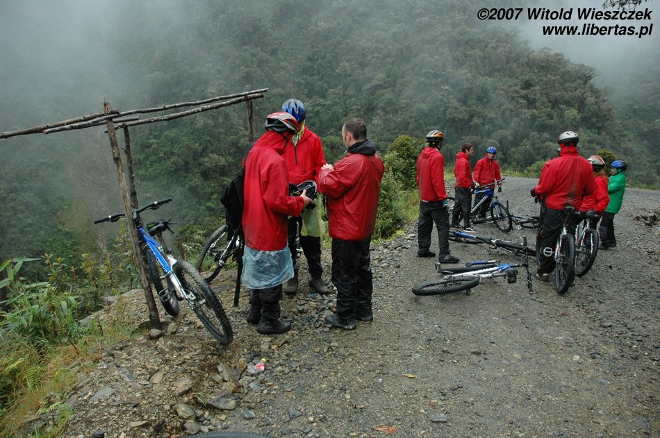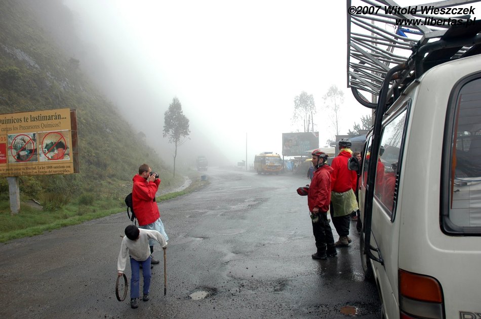 Rano jedziemy z La Paz na przełęcz La Cumbre leżącą na wysokości 4725 m n.p.m.. Tutaj zaczyna się Droga Śmierci, o której towarzyszący nam Boliwijczyk z dumą mówi „najniebezpieczniejsza droga świata”. Do niedawna ginęło na niej 200–300 osób rocznie. Pierwszy odcinek od niedawna jest asfaltowy, później już tylko błoto, zakręty, kamienie i urwiska. Aha, no i oczywiście opłata za przejazd, bo gringo w Boliwii nawet umrzeć nie może za darmo!