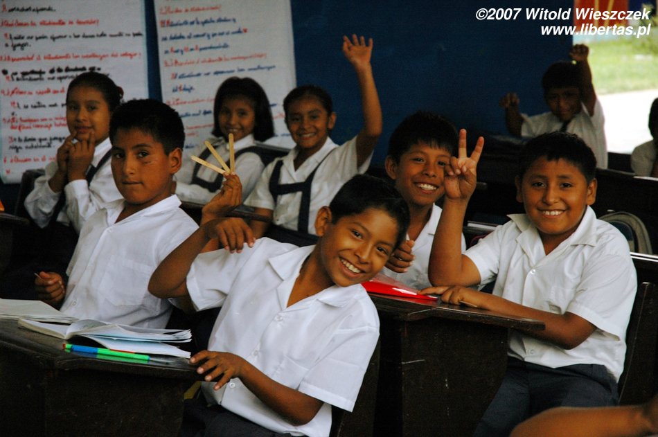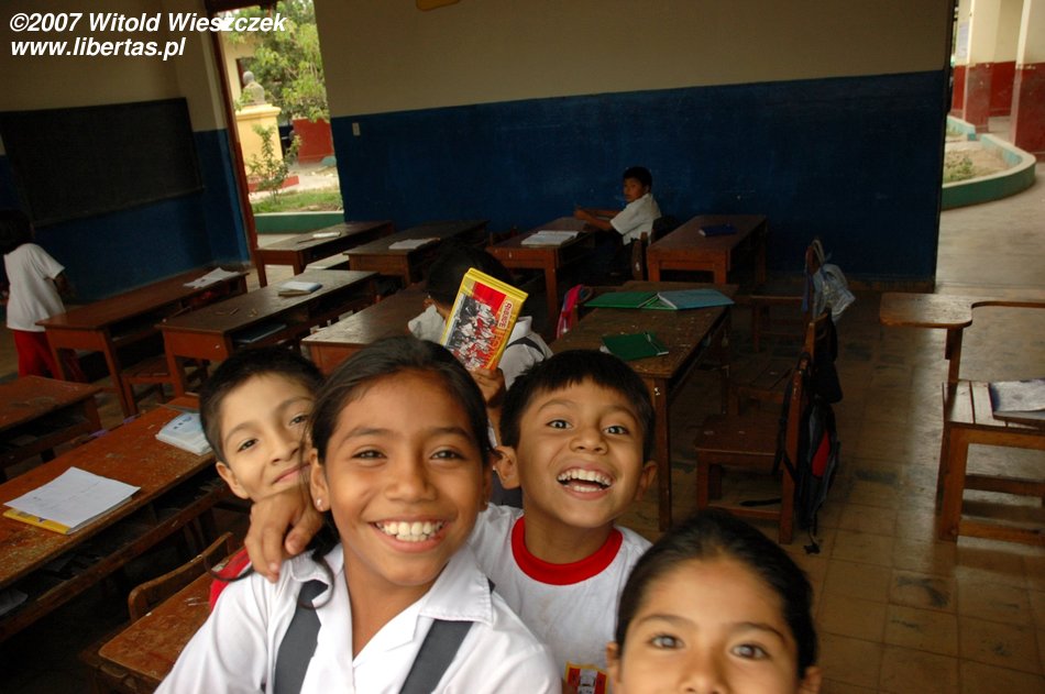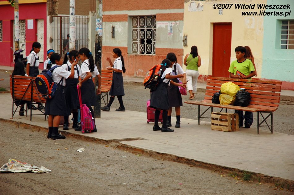 Do odjazdu autobusu było jeszcze sporo czasu, więc poszliśmy zobaczyć czy tutaj też jest Plaza de Armas. Oczywiście jest. Po drodze mijaliśmy szkołę... Nie mam pojęcia czemu, ale dzieci cieszyły się na nasz widok tak, jak byśmy byli tam pierwszymi turystami. Kompletnie tego nie rozumiem! Ale to nie zmienia faktu, że było to bardzo sympatyczne i odrobinę zabawne.