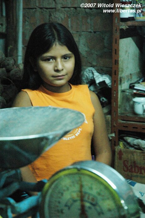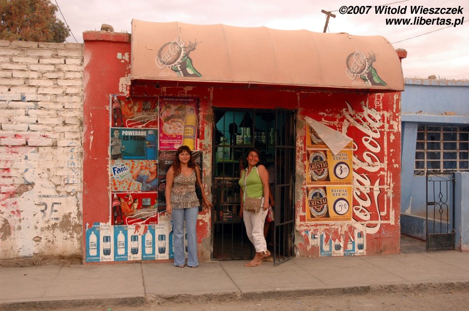 Te kilka dni spędzone w Peru utwierdziły mnie w przekonaniu, że nic mi ze strony tych ludzi nie grozi i coraz śmielej zapuszczałem się w mniej uczęszczane uliczki. Tym razem doszedłem właściwie do końca zabudowań, a przy sklepie poznałem dwie panie, które również chętnie dały się sfotografować, niestety mój zakres słów z języka hiszpańskiego nie bardzo nadawał się do prowadzenia jakiejś bardziej wyszukanej konwersacji.