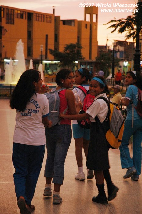 Chłopakom Nazca niespecjalnie się podobało. No cóż, miasteczko jak miasteczko, może Plaza de Armas dość skromny, ale ja wspominam to miejsce bardzo ciepło. Praktycznie na każdym kroku obcy ludzie uśmiechali się do mnie, a dzieci wołały hello! i czasem chichocząc, uciekały przed aparatem, ale częściej same specjalnie wchodziły w kadr. A w tym wszystkim były tak naturalne i żywiołowe... Robiły po prostu to, na co miały ochotę. Polskie dzieci prawdopodobnie w takiej sytuacji uznałyby, że takie zachowanie to „obciach”...