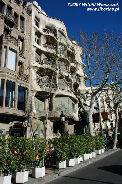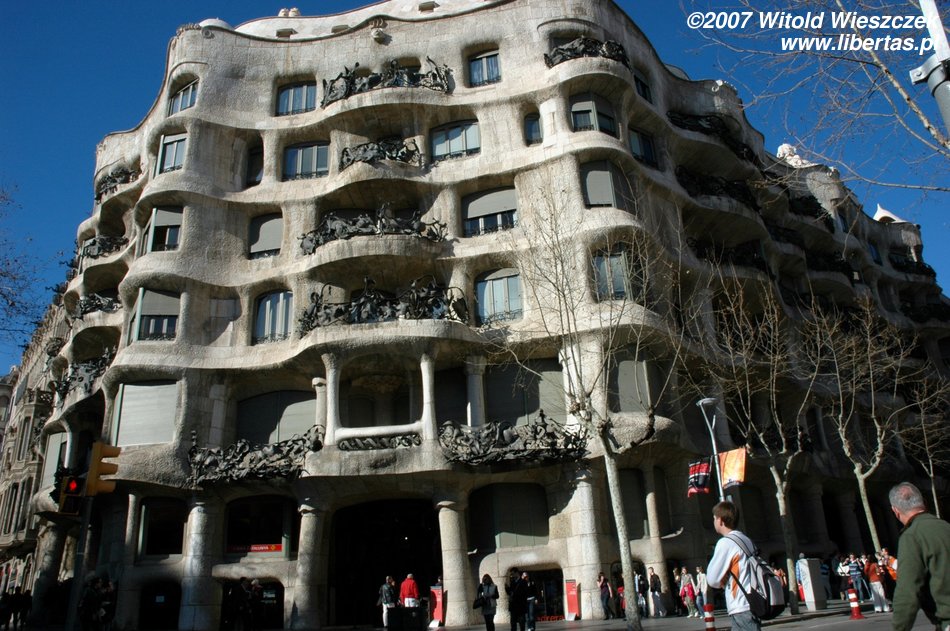 Na zdjęciach powyżej Casa Mila, na dachu której odbywają się często koncerty muzyki klasycznej. A obok widać inny budynek Gaudiego - Casa Batlló. Miejsce to nazywane jest Placem Niezgody, ze względu na bliskość budynków projektowanych w zupełnie różnych stylach, przez trzech architektów.
