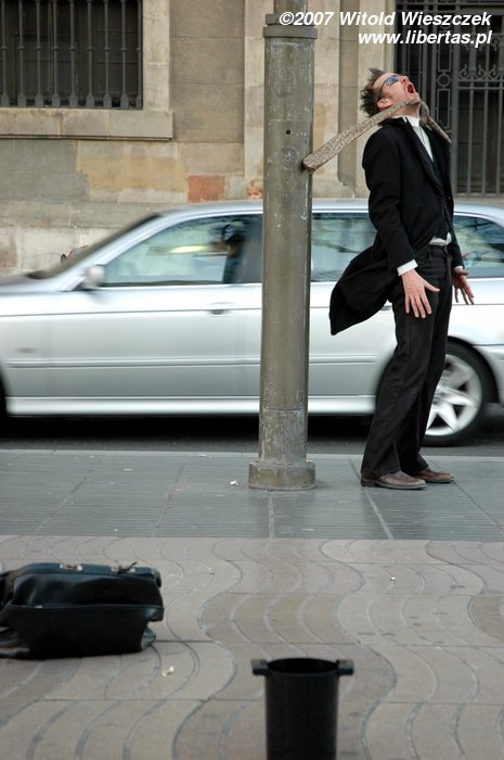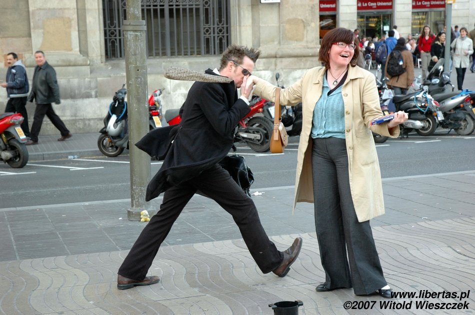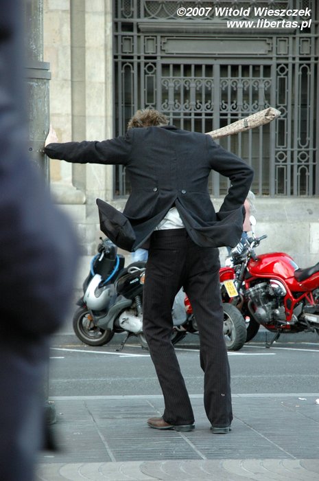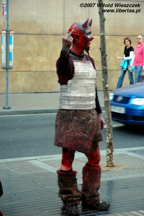 Barcelona... czegoż tu nie było? Edward Nożycoręki, taniec z wachlarzami, stół z powyłamywanymi nogami (chyba), a nawet bezczelny diabeł... Ale wszystkich przebił facet walczący z wiatrem! Nie mogłem oderwać od niego obiektywu!:)