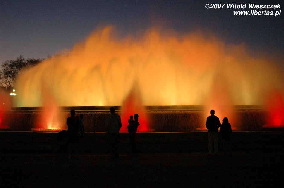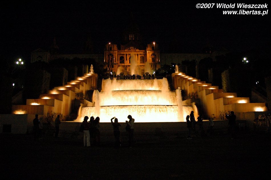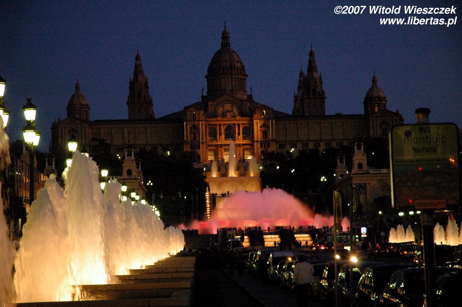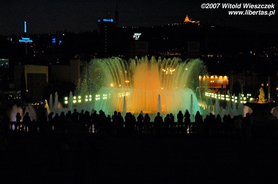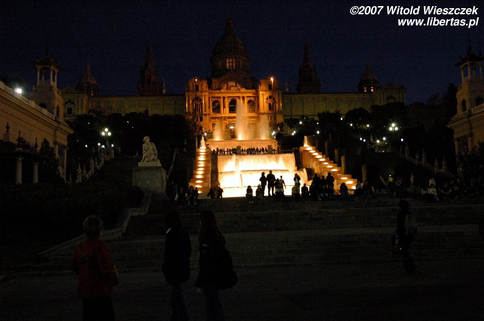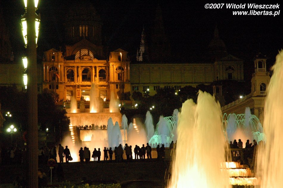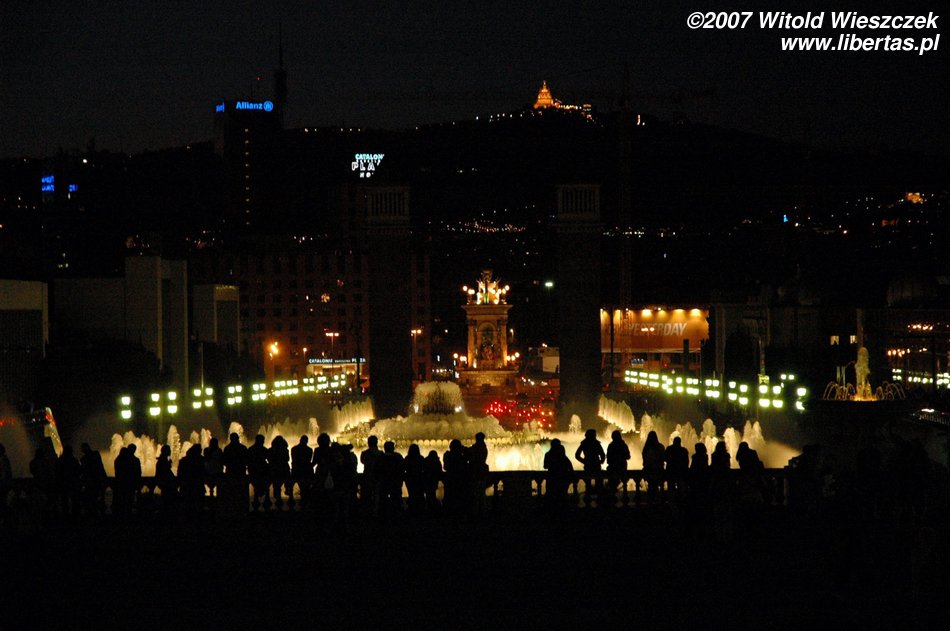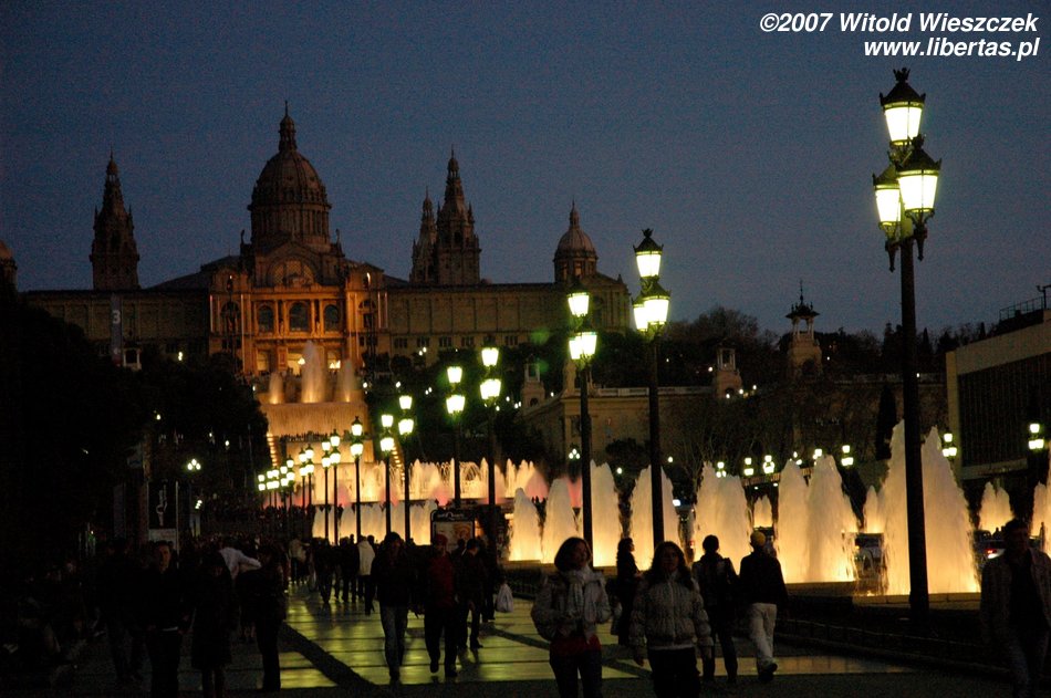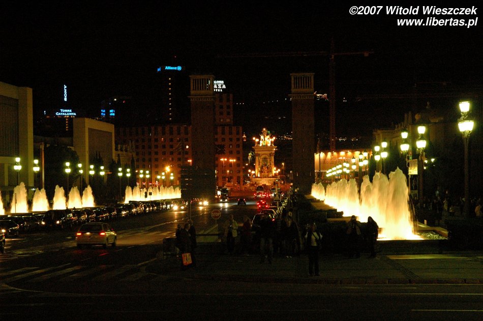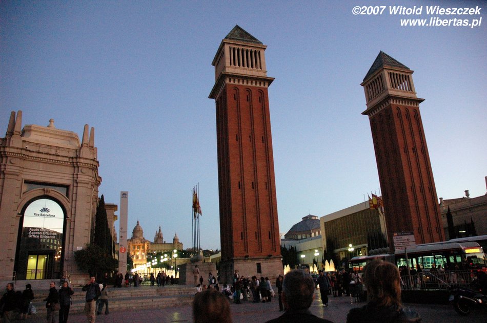 I tak doszliśmy do portu, mijając Kolumba, który wskazywał nam kierunek dalszej drogi... ale zanim polecieliśmy dalej w planie mieliśmy jeszcze jedno miejsce - Plaza Espana, u podnóża wzgórza Montjüic (Wzgórze Żydowskie). Znajduje się tam fontanna zaprojektowana w 1928 roku przez Józefa Marię Jujola, powstała w 1929. Co wieczór odbywają się tam prawdziwe spektakle światła, wody i dźwięku. Po drodze mijamy dwie bliźniacze Weneckie Wieże na wzór wieży na placu św. Marka w Wenecji, zaczęto je wznosić w 1928 r., wg projektu architekta Ramona Reventósa y Farraronsa. Specjalnie dla Was zdjęcia z cyklu Barcelona de noche, do słów nieśmiertelnego Freddiego...