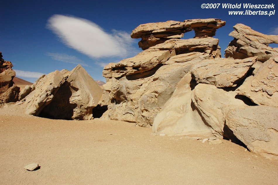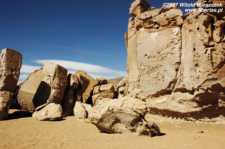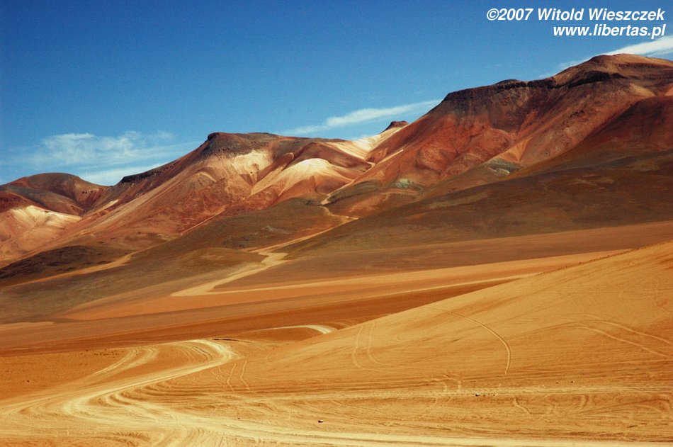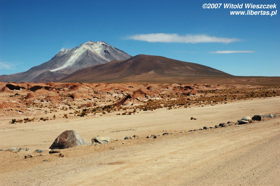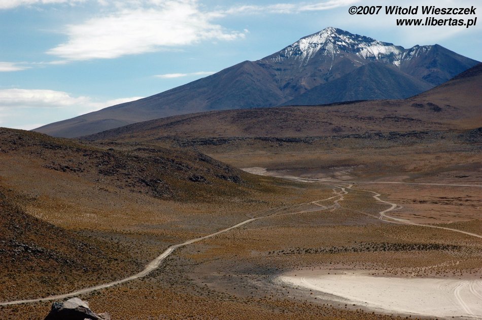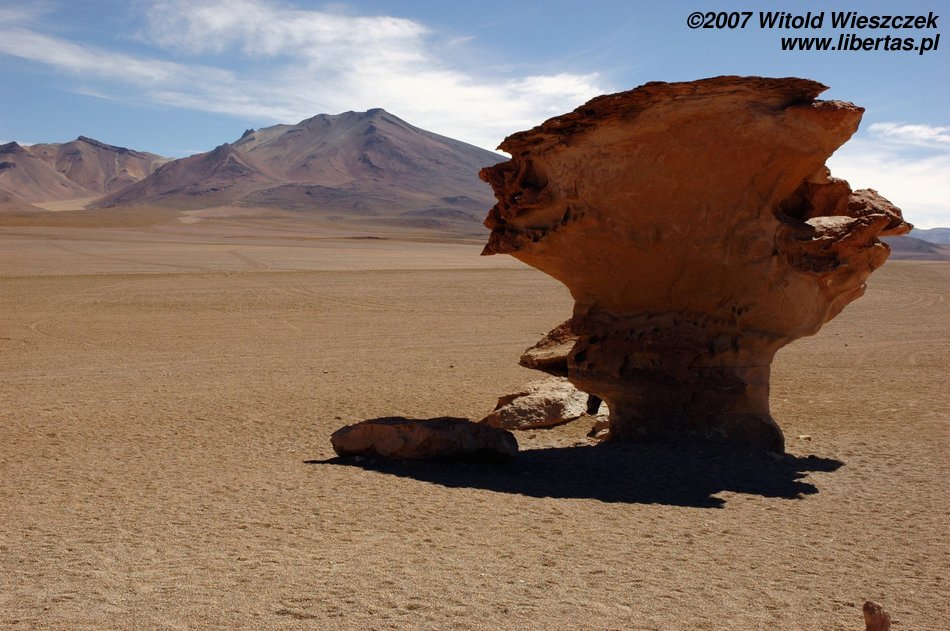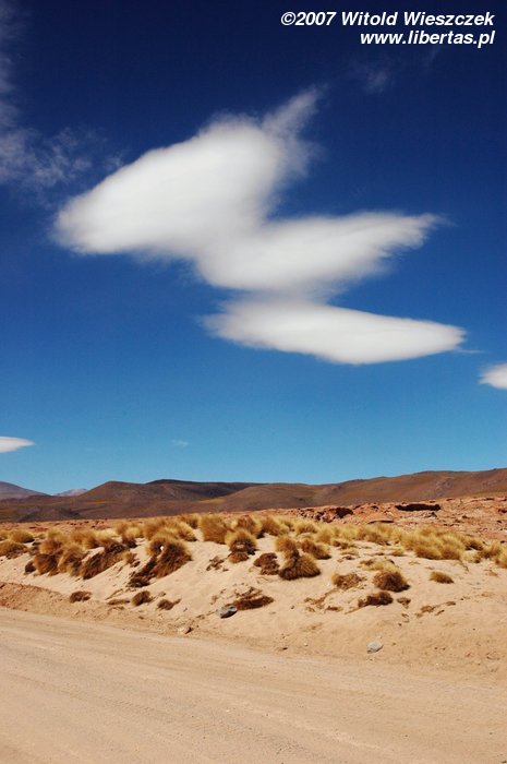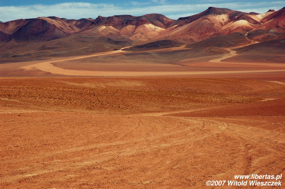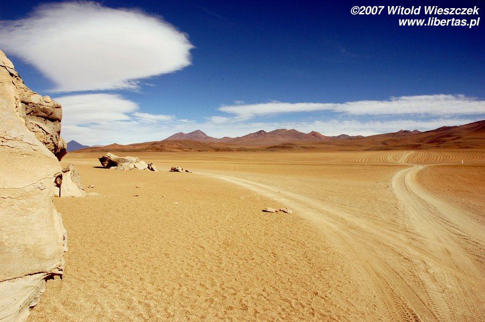 Niedługo potem wjechaliśmy na Salar de Uyuni (Boliwia), czyli największą solniczkę świata – zajmuje powierzchnię 10,582 km² i zawiera około 10 billionów ton soli! Leży na Altiplano na wysokości 3653 m n.p.m. i podobnie jak Titicaca (64 zdjęcia) jest pozostałością po istniejącym w plejstocenie jeziorze Ballivian. Jest to jeden z najbardziej płaskich obszarów na świecie – różnica wzniesień to niecałe 41 cm!