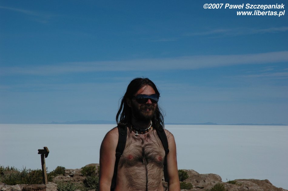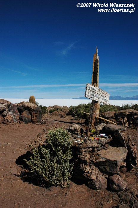 Na wyspie nasza kucharka przyrządza nam jadalny obiad. Niestety już nie tak smaczny, jak np. te na Pampie. Cały dzień jedziemy przez Salar, powoli krajobraz trochę się zmienia i dojeżdżamy do miejsca spoczynku. W zupie, którą jem na kolację, jest bardzo długi włos naszej bezzębnej kucharki-Indianki, ale może nie będę się o tym rozpisywał. Buenas Noches!