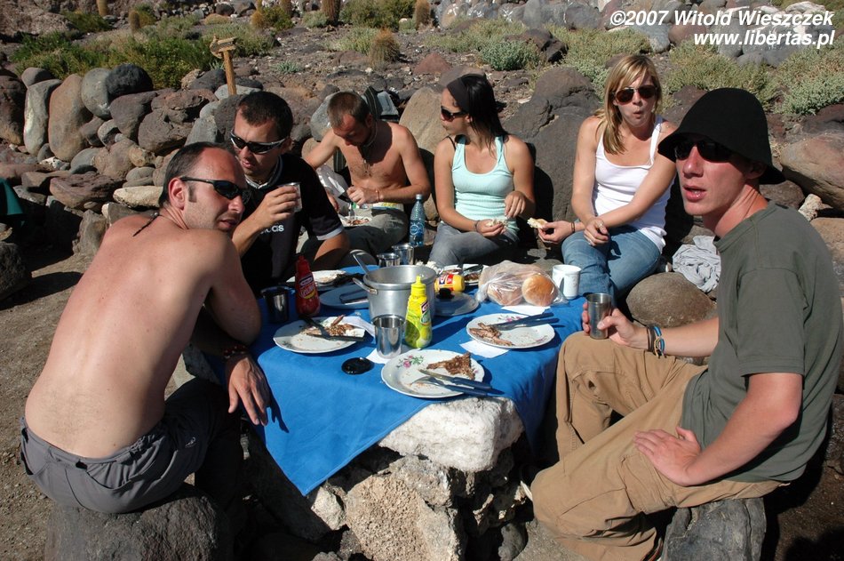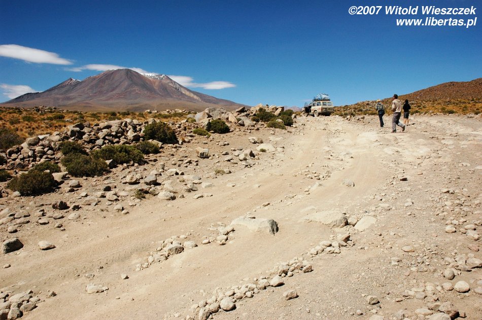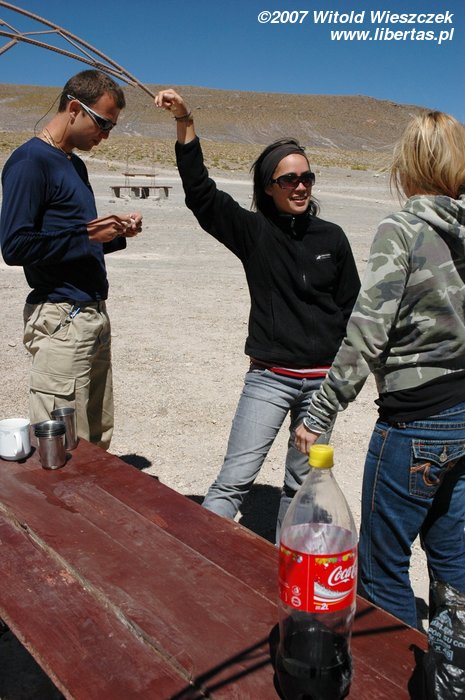 Dojeżdżamy do granicy kolejnego parku – znowu szlaban, znowu trzeba płacić. Płacimy i jedziemy dalej, wprost do miejsca, gdzie wypadnie nam kolejny nocleg. Tu już nie ma nawet wody, a że Polak nie wielbłąd, wyciągamy kolejne pisco. Buenas Noches.