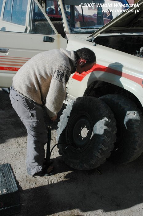 Rano mamy problemy techniczne, Robak zgłasza się na ochotnika do pompowania koła, zaraz później wyruszamy w dalszą drogę! Co jakiś czas zatrzymujemy się, żeby podziwiać widoki i pobawić się z naszymi Amerykankami.