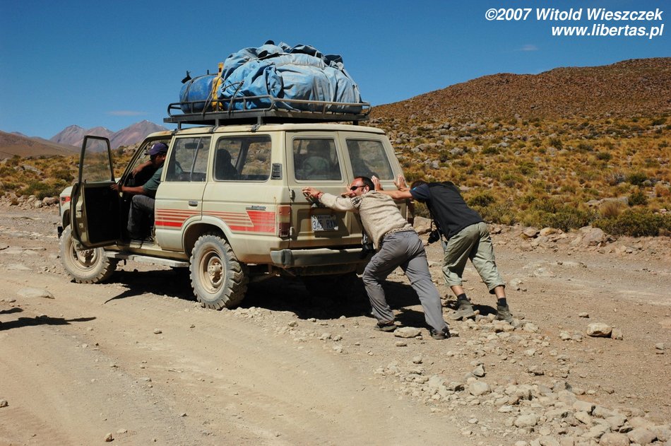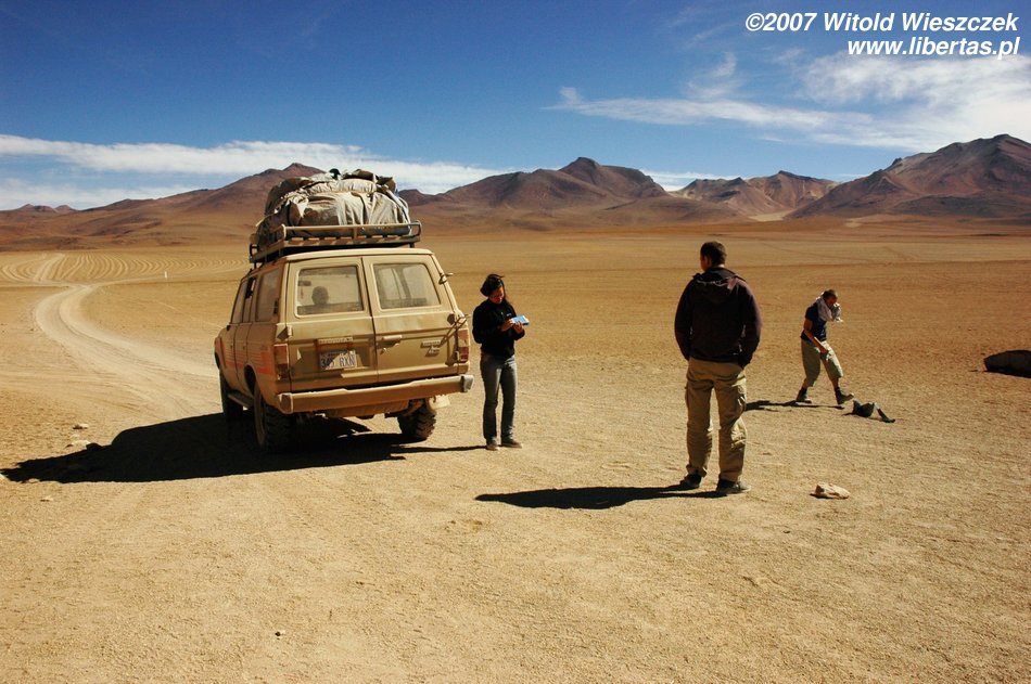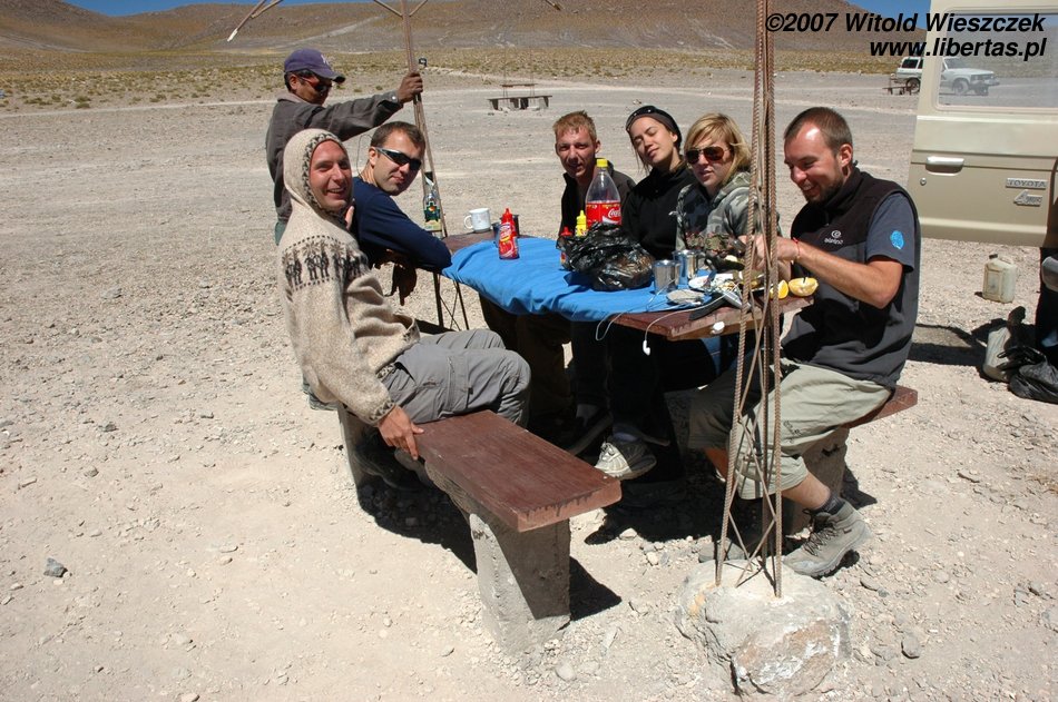 Nad ranem dojechaliśmy do Uyuni (Boliwia), tutaj mieliśmy trochę ponad godzinę na zjedzenie śniadania i uzupełnienie braków w zaopatrzeniu. Następnie załadowaliśmy się do dżipa i ruszyliśmy w drogę.