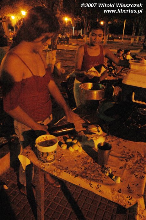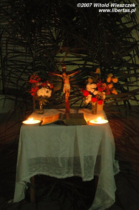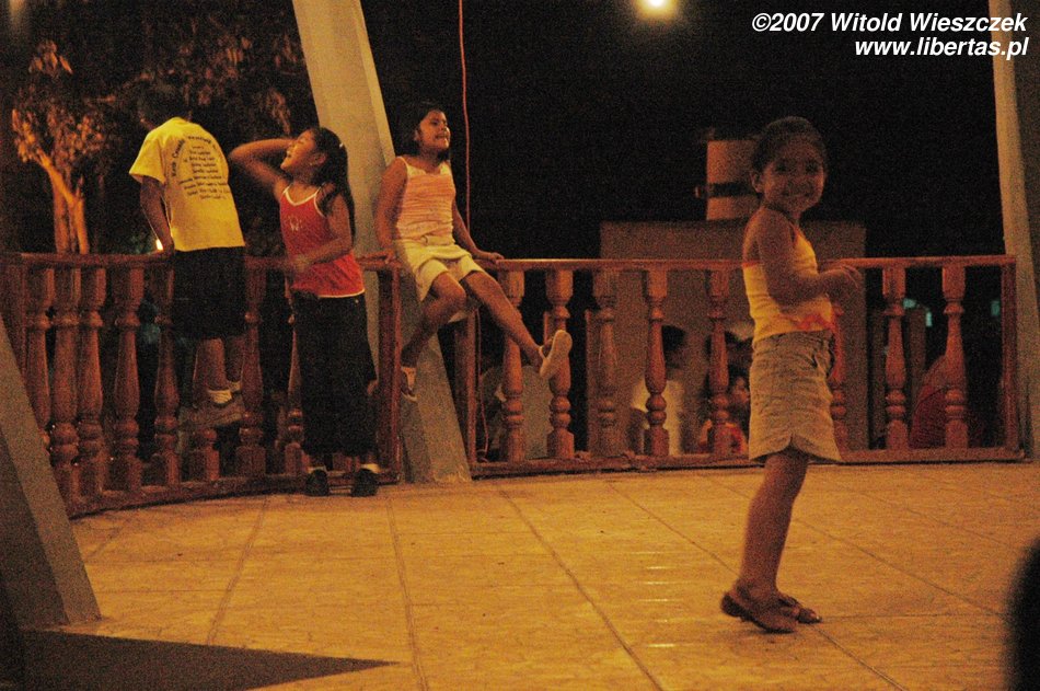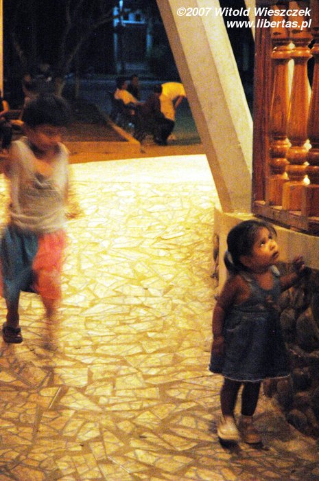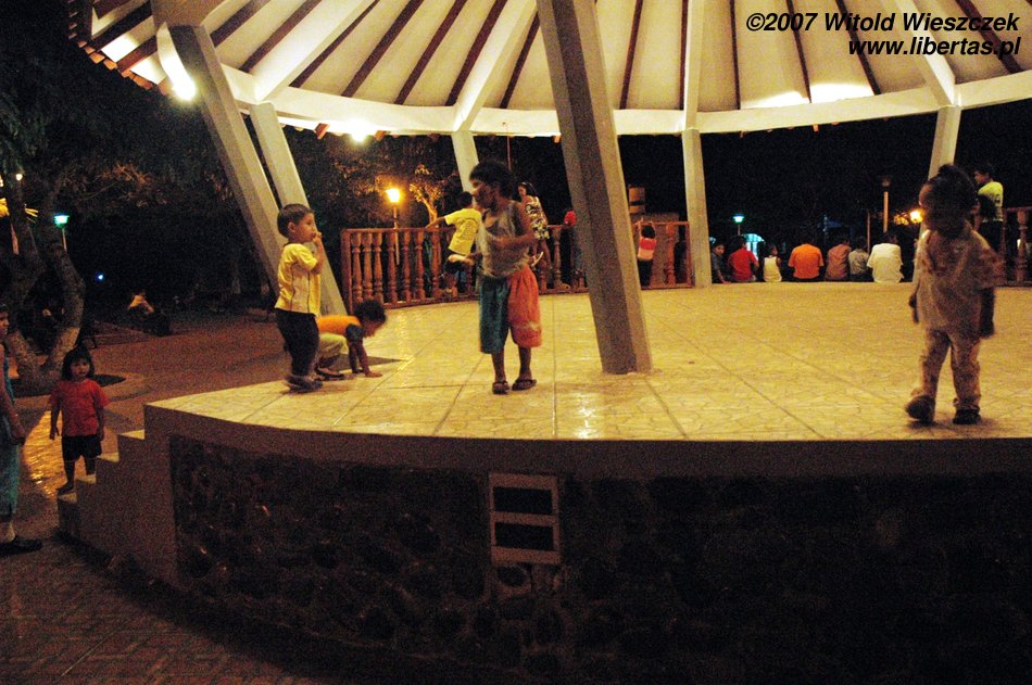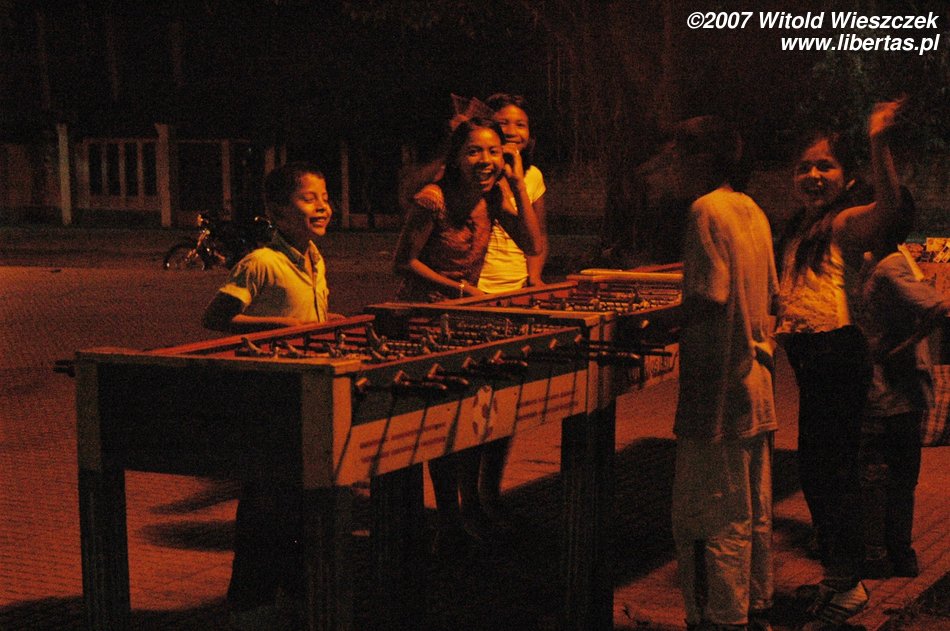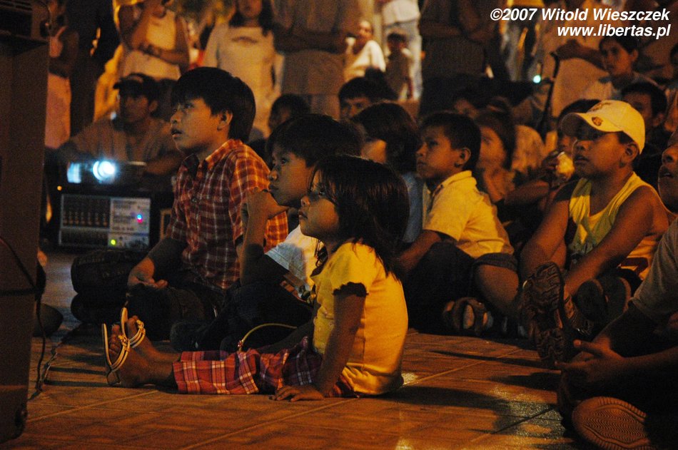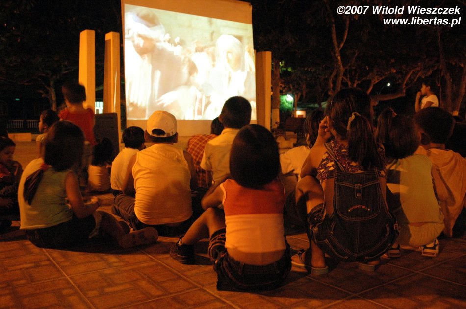 Jest pełno ludzi, stoją dziewczyny i sprzedają coś na ciepło, większe dzieci grają w piłkarzyki, młodsze siedzą zahipnotyzowane przed ustawionym specjalnie na tę okazję ekranem, oglądając z projektora film o życiu Jezusa. Jest jakoś inaczej niż u nas, tak jakby całe miasto obchodziło święta wspólnie!