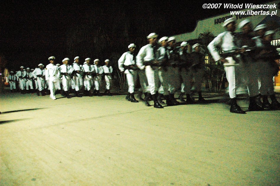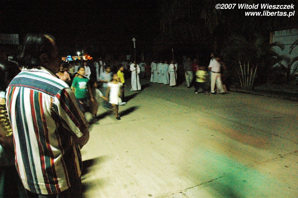 Wieczorem wychodzimy na miasto, przez które przechodzi procesja z okazji zbliżających się świąt. W orszaku idą mieszkańcy miasta oraz oczywiście marynarze. Niosą szklaną podświetlaną (po amerykańsku kiczowatą – a jakże!) trumnę z Chrystusem. Idziemy w przeciwnym kierunku niż procesja, docierając na główny plac.