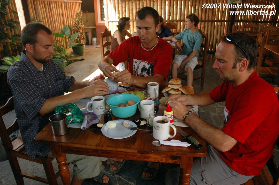 Pierwszy raz w życiu spędzam święta z dala od rodziny, z dala od ojczystej ziemi, że nie wspomnę o gołąbkach, serniku, białym barszczu, babce, bigosie ehh... A tutaj z całej tradycji zostały nam tylko jajka na twardo popijane mate de coca. Po śniadaniu szybki bilard, pakowanie i biegiem na samolot!