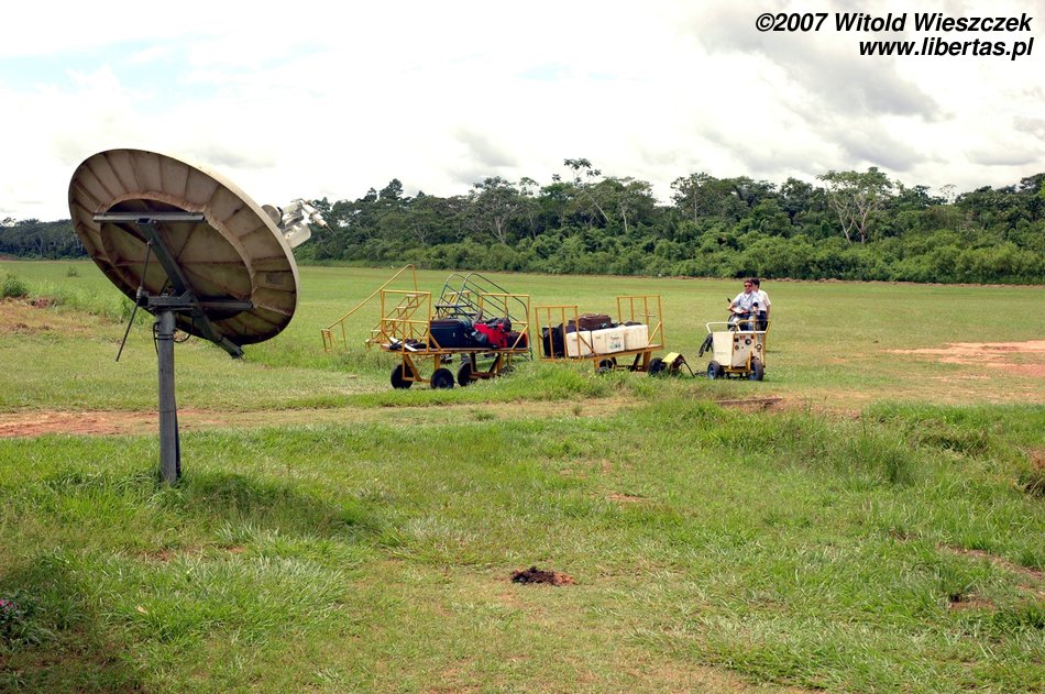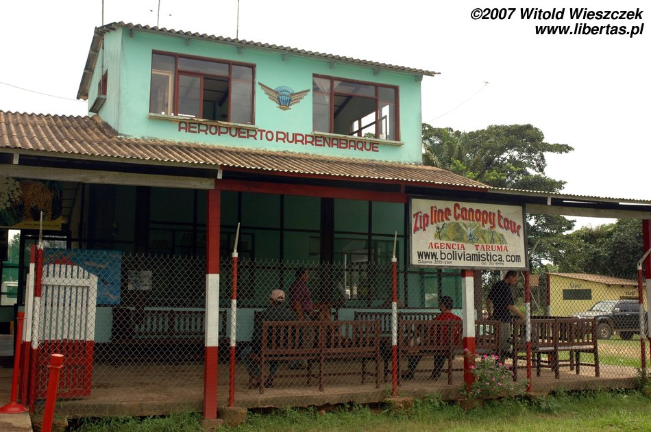 Na pewno zastanawiacie się, dlaczego relacja z Wielkiej Niedzieli tak nagle się urwała... Otóż nad Rurrenabaque (a więc również nad nami) zebrały się czarne chmury i zaczęło padać. Pas startowy bardziej przypomina ładnie przystrzyżoną murawę boiska niż płytę lotniska, więc kiedy spadnie deszcz, samoloty nie mogą wystartować; najpierw pas startowy musi wyschnąć! No i w ten oto sposób okazało się, że jesteśmy uziemieni! Co gorsza, mieliśmy już zapłacony bilet na pociąg z La Paz do Uyuni oraz za wycieczkę przez Salar de Uyuni, które przepadną, bo nie stawimy się na czas! Dla odmiany nie mieliśmy zapłaconego hotelu za kolejną noc w Rurrenabaque! Cóż było robić, poszliśmy pić! Skutki tego picia widać było w mieście jeszcze na drugi dzień, w postaci pozostawionych przez nas butelek po winie.
