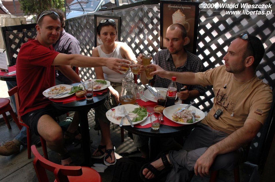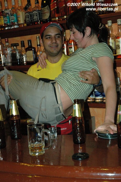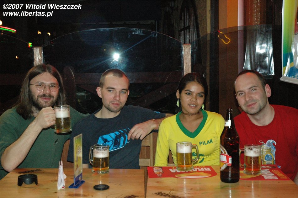 Bardzo szybko się zaprzyjaźniliśmy, a zabawa była przednia! Marcelo uczył Karolinę tańczyć, a później nawet wymienili się koszulkami! Cieszyłem się ślicznymi dziewczynami, zimnym piwem, a nawet smakiem cygara, którym poczęstował mnie Andrew, przypadkowo poznany Amerykanin chętny do rozmów o polityce... Z Karoliną natomiast tańczyliśmy na samochodzie, na dachu i nawet z flagą! Było genialnie!
