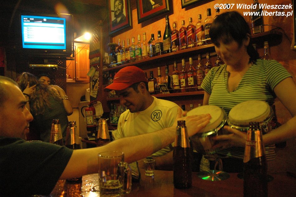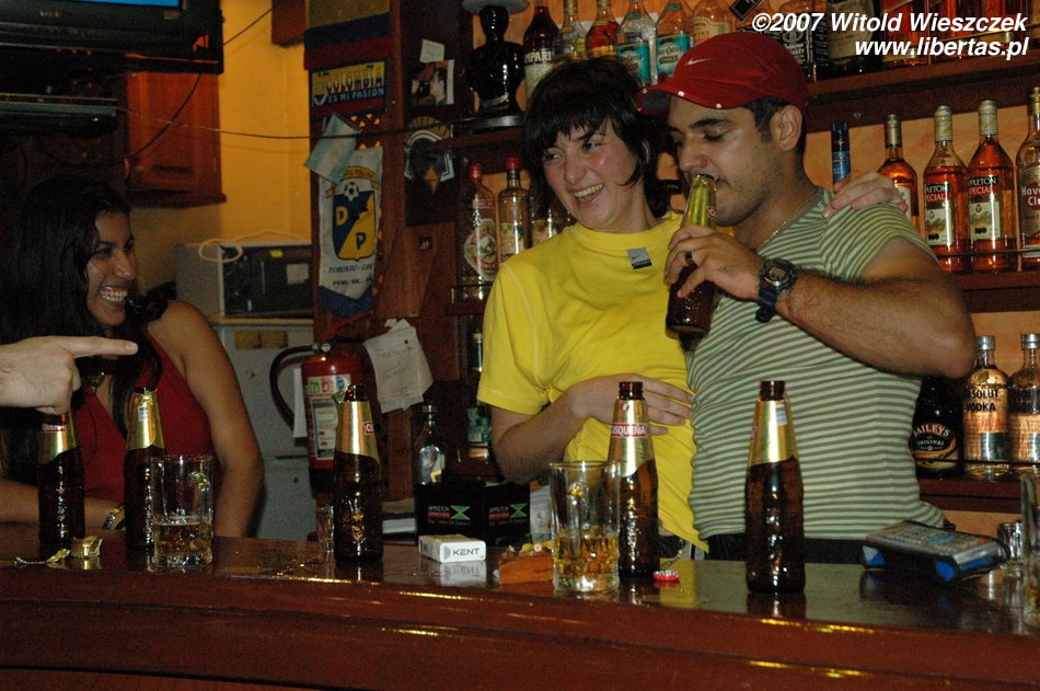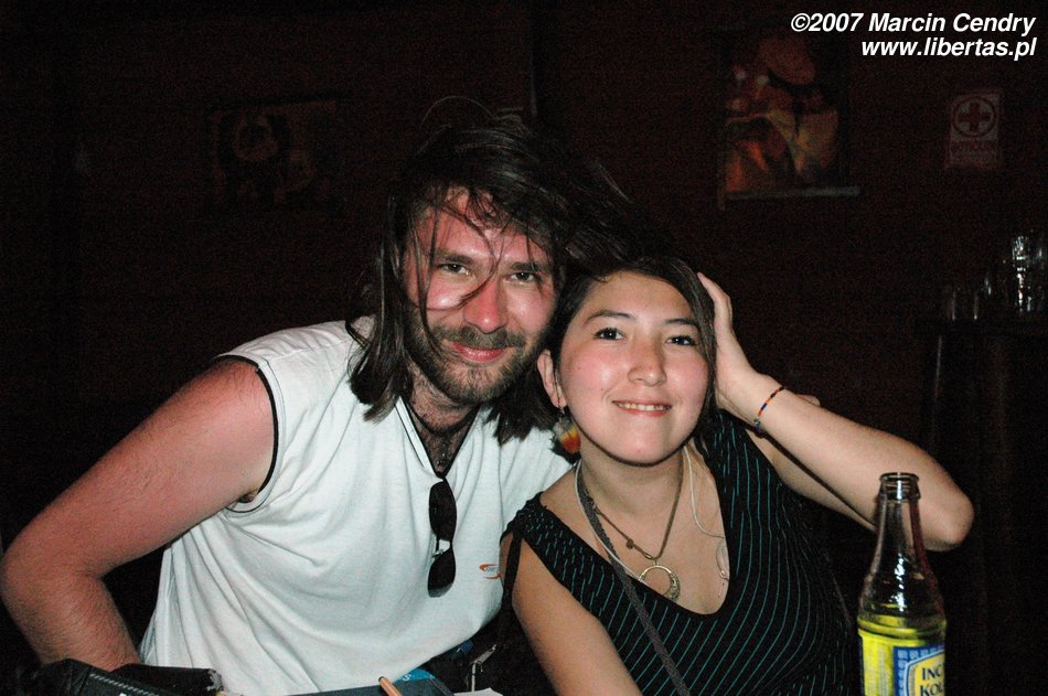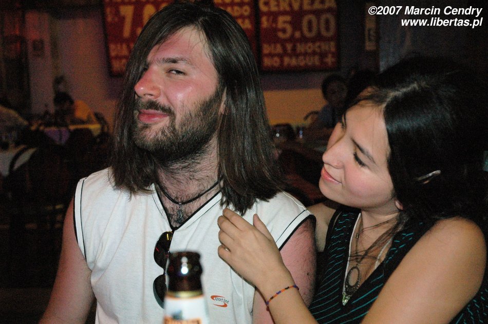 Idąc za muzyką, doszliśmy do bardzo przyjemnego lokalu o nazwie Cubata, na przywitanie dostaliśmy całusa od Kelly (ech ta peruwiańska gościnność), a Karolina wytargowała tańsze piwo (chyba 6s/0.33l), za co miałem zatańczyć z dziewczyną, która tak miło nas witała... Nie protestowałem. Oczywiście Andrea tańczyła o wiele lepiej niż ja. Aż miło było popatrzeć...