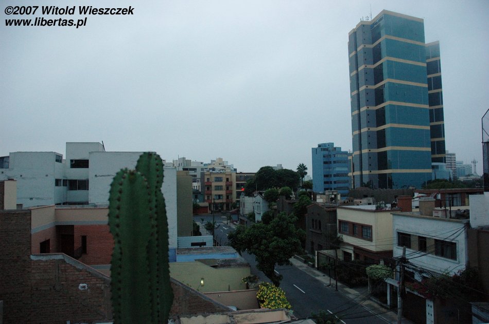 Kiedy wracaliśmy, już świtało. Było po 6, ale nam ciągle było mało, więc jeszcze weszliśmy zatańczyć na dachu hotelu... Tak wygląda Lima o 6.30 z dachu hotelu Olimpus na Miraflores (czteroosobowy pokój 50$/dobę). Dobranoc.