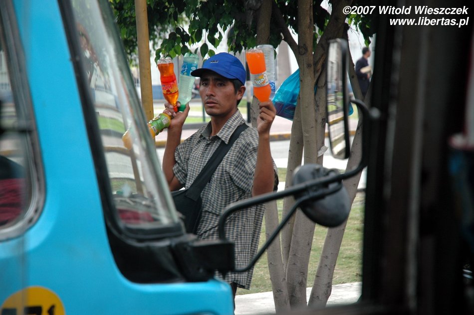Następnie wybraliśmy się do centrum (kurs autobusem – 1s), po drodze podziwiając tamtejsze zwyczaje. To niesamowite, ile samochodów i autobusów potrafi się zmieścić na ich drogach. Zaskakujące, że nie widzieliśmy po drodze żadnego wypadku, a na wielu skrzyżowaniach zamiast sygnalizacji świetlnej jest wysepka z czymś, co wygląda jak jednoosobowy sklepik Inca Koli z panią policjantką w środku, a czasem bez. Na dodatek nie ma chyba czegoś takiego jak pierwszeństwo przejazdu, dojeżdżając do skrzyżowania, kierowcy po prostu trąbią, pokazując w ten sposób innym, że nadjeżdżają. Możecie sobie wyobrazić, jaki to powoduje hałas:). Do tego autobusy nie zatrzymują się na przystanku, facet cały czas wychyla się przez otwarte drzwi i głośno zachęca wszystkich do podróży w oznajmianym przez siebie kierunku, jeśli widzi, że ktoś jest zainteresowany kursem, to się po prostu przy nim zatrzymuje! Oczywiście rozkłady jazdy nie mają w tych warunkach racji bytu.