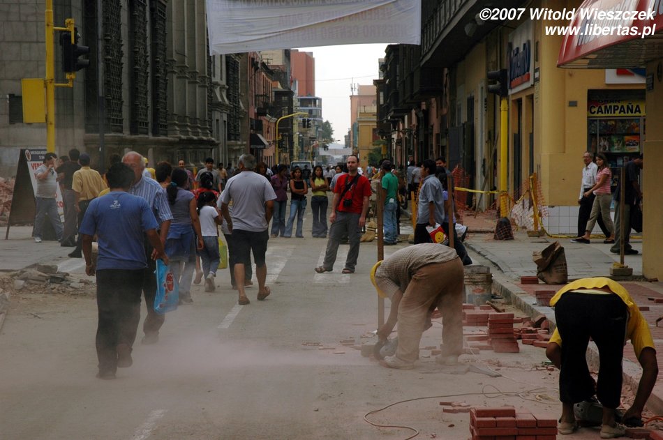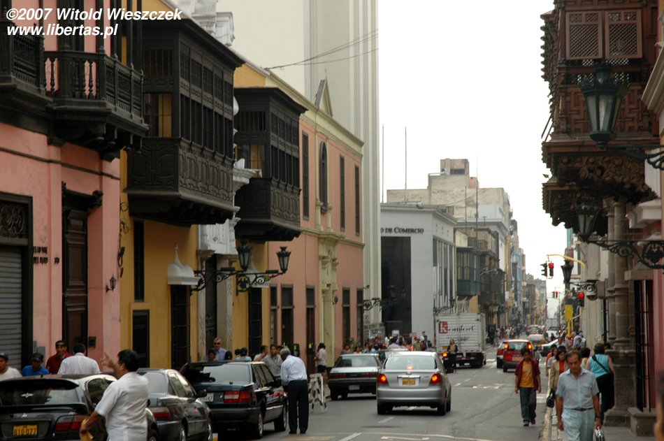Lima może nie jest tak bogata jak Barcelona, ale ma swój urok, sporo ciekawych kolonialnych kamieniczek z pięknymi wykuszami i malowniczymi dziedzińcami... Widać i niestety słychać ekipy remontowe kładące nowy brukowany chodnik.