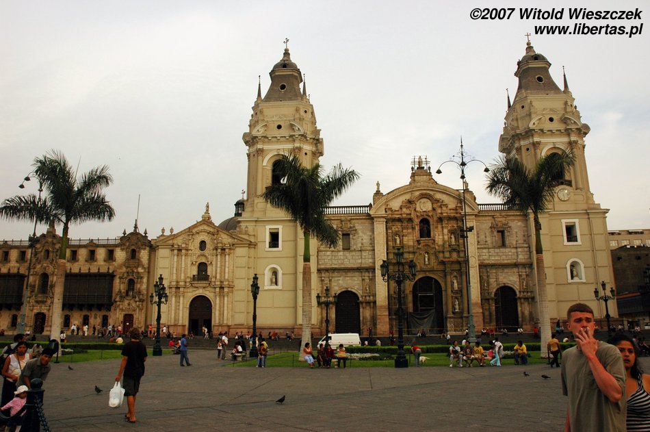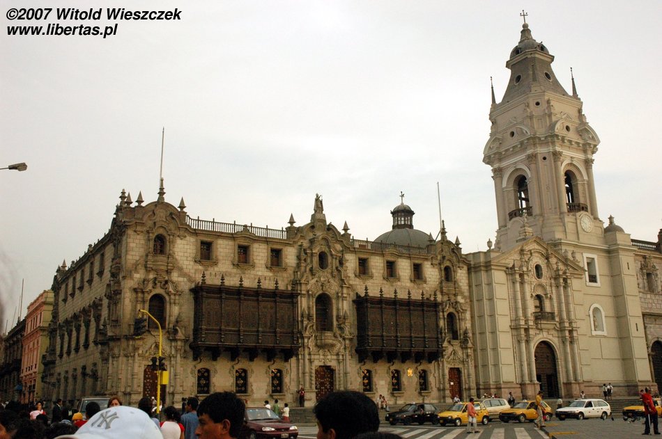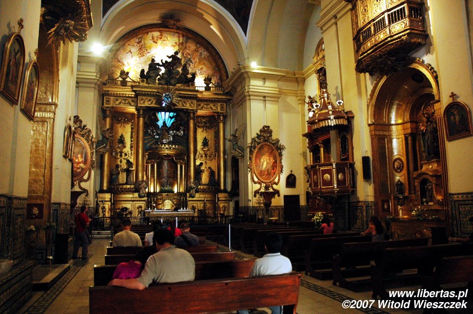 Weszliśmy pooglądać katedrę od środka, a następnie jeszcze zaliczyliśmy zmianę warty (cambio de guardia) przed Pałacem Wicekrólów. Poznaliśmy kolejnych sympatycznych Peruwiańczyków – Maritza'e z przyjaciółmi, którzy do końca wieczoru byli naszymi przewodnikami po Limie.