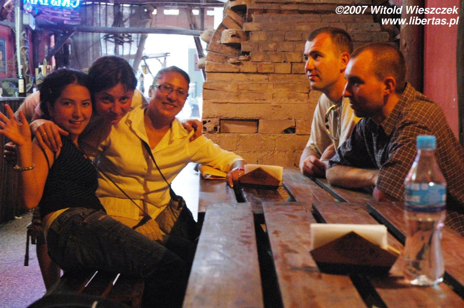 Po czterech godzinach dojeżdżamy na miejsce. Ten terminal nie wygląda już tak światowo. Bierzemy taksówkę do hotelu, wjeżdżamy w egipskie ciemności, zaczynamy podejrzewać, że facet wiezie nas do lasu, zastanawiamy się, czy tylko nas okradnie, czy też zabije. Co za niefart. Głupio tak zginąć na samym początku wyprawy! O dziwo dojeżdżamy na miejsce, taryfa nas kosztuje 6s, hotel 15s od łebka w pokoju 4-osobowym bez łazienki... Ale warunki są w porządku. Na dobranoc pijemy piwo 6s/litr. Robak jako resztę dostaje lotnika1, niczego więcej do szczęścia nie trzeba! Idziemy spać.