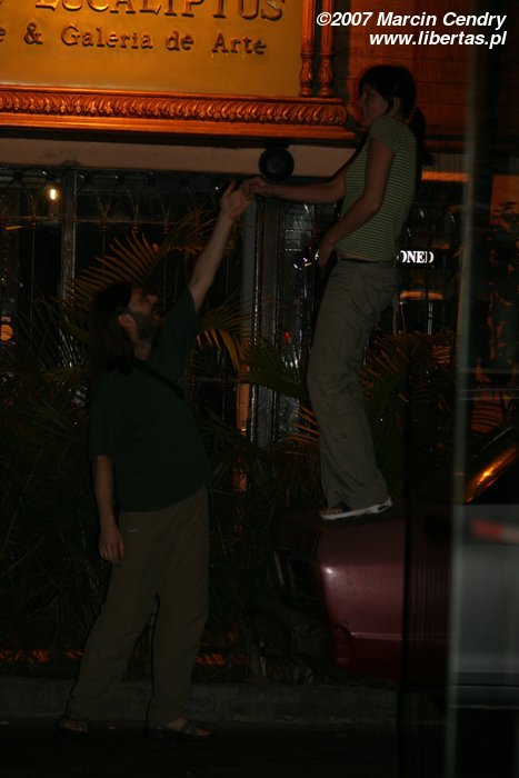 Na skrzyżowaniu spotykamy Marcelo, który ucieszył się na nasz widok... Ochroniarz trochę mniej. Powiedział, że jest absolutny zakaz wchodzenia na dach w celach tanecznych i nie tylko!